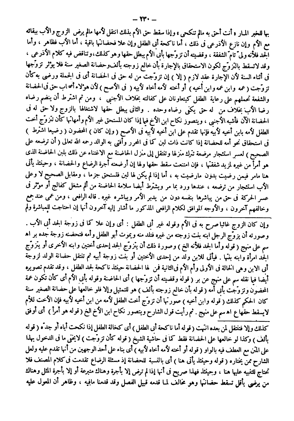 (قَوْلُهُ: بِأَنْ خَالَعَ زَوْجَتَهُ بِأَلْفٍ) هُوَ لِلتَّمْثِيلِ وَإِلَّا فَلَوْ خَالَعَهَا عَلَى حَضَانَةِ الصَّغِيرِ سَنَةً كَانَ الْحُكْمُ كَذَلِكَ (قَوْلُهُ: وَابْنِ أَخِيهِ) صُورَتُهَا أَنْ تُزَوَّجَ أُخْتُ الطِّفْلِ لِأُمِّهِ مِنْ ابْنِ أَخِيهِ لِأَبِيهِ فَإِنَّ الْأُخْتَ لِلْأُمِّ لَا يَسْقُطُ حَقُّهَا ع اهـ سم عَلَى مَنْهَجٍ.