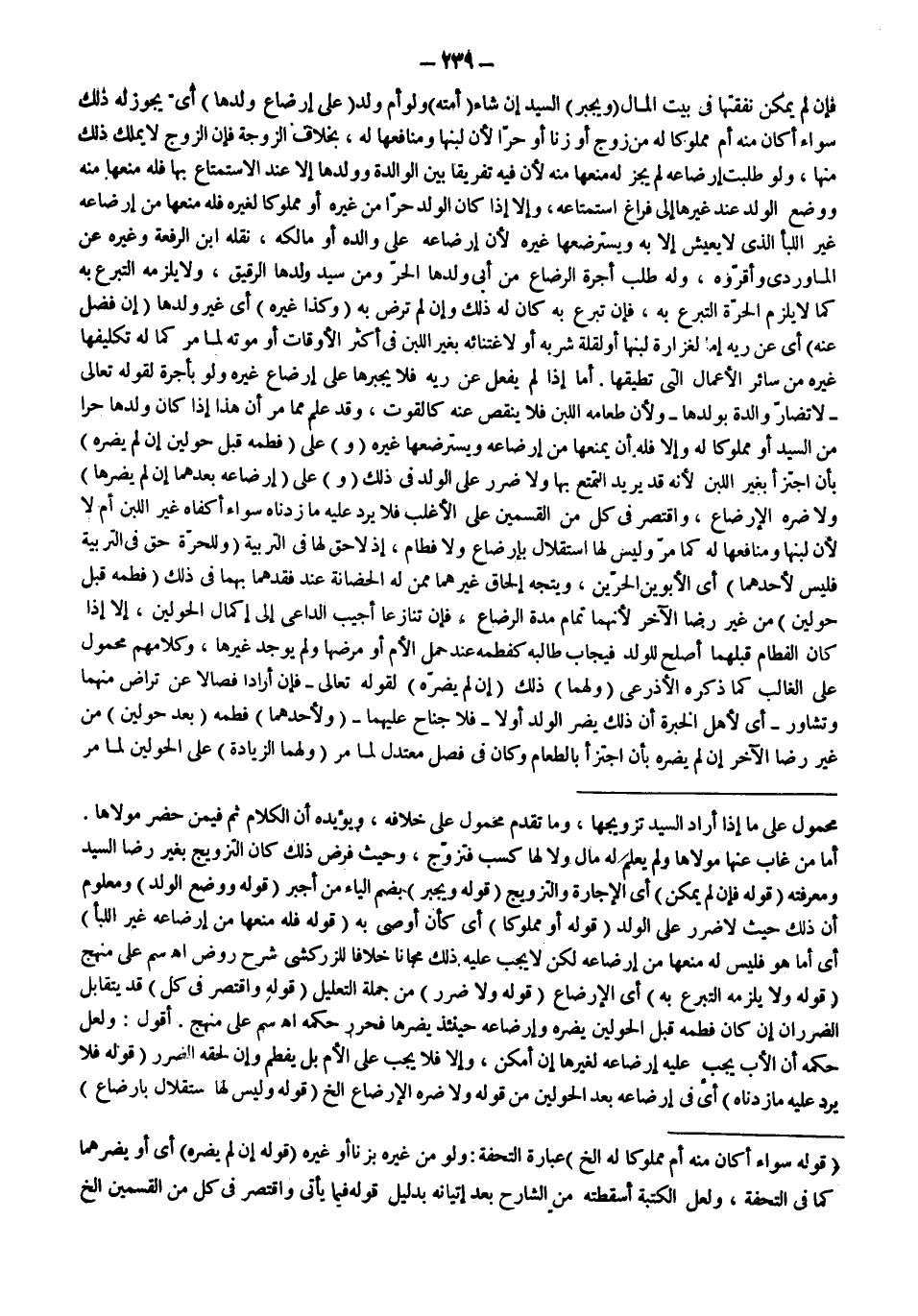 ـــــــــــــــــــــــــــــSمَحْمُولٌ عَلَى مَا إذَا أَرَادَ السَّيِّدُ تَزْوِيجَهَا، وَمَا تَقَدَّمَ مَحْمُولٌ عَلَى خِلَافِهِ، وَيُؤَيِّدُهُ أَنَّ الْكَلَامَ ثَمَّ فِيمَنْ حَضَرَ مَوْلَاهَا. أَمَّا مَنْ غَابَ عَنْهَا مَوْلَاهَا، وَلَمْ يُعْلَمْ لَهُ مَالٌ وَلَا لَهَا كَسْبٌ فَتُزَوَّجُ، وَحَيْثُ فُرِضَ ذَلِكَ كَانَ التَّزْوِيجُ بِغَيْرِ رِضَا السَّيِّدِ وَمَعْرِفَتِهِ