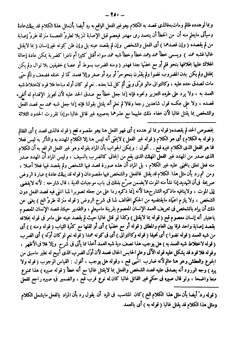 ـــــــــــــــــــــــــــــQقَوْلُهُ: رُدَّ أَيْضًا بِأَنَّ مِثْلَ هَذَا الْكَلَامِ إلَخْ.) كَانَ الْمُنَاسِبُ فِي الرَّدِّ أَنْ يَقُولَ رُدَّ بِأَنَّ الْمُرَادَ بِالْفِعْلِ مَا يَشْمَلُ الْكَلَامَ وَمِثْلُ هَذَا الْكَلَامِ قَدْ يَقْتُلُ غَالِبًا.
