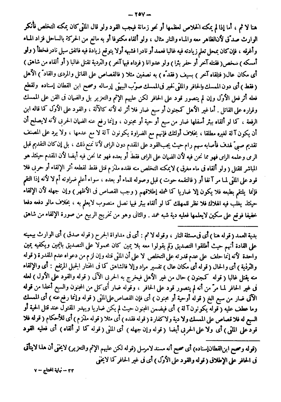 ـــــــــــــــــــــــــــــQ (قَوْلُهُ: وَصَحَّحَ ابْنُ الْقَطَّانِ إسْنَادَهُ) أَيْ صَحَّحَ أَنَّهُ مُسْنَدٌ لَا مُرْسَلٌ (قَوْلُهُ: لَكِنْ عَلَيْهِمْ الْإِثْمُ وَالتَّعْزِيرُ) لَا يَخْفَى أَنَّ هَذَا لَا يَتَأَتَّى فِي الْحَافِرِ عَلَى الْإِطْلَاقِ (قَوْلُهُ: وَالْقَوَدُ عَلَى الْأَوَّلِ) أَيْ فِي غَيْرِ الْحَافِرِ كَمَا لَا يَخْفَى