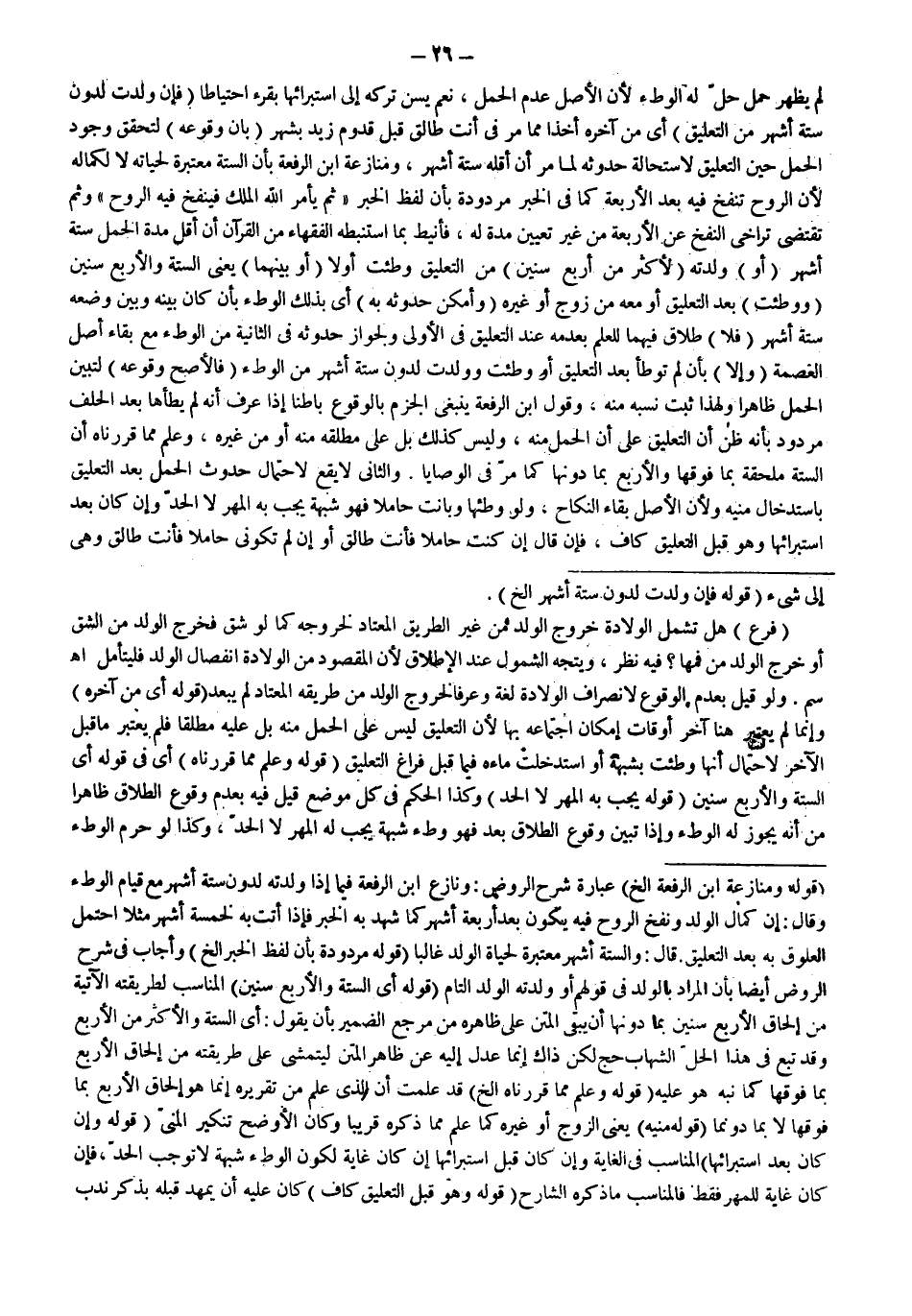 قَالَ: وَالسِّتَّةُ أَشْهُرٍ مُعْتَبَرَةٌ لِحَيَاةِ الْوَلَدِ غَالِبًا (قَوْلُهُ: مَرْدُودَةٌ بِأَنَّ لَفْظَ الْخَبَرِ إلَخْ.) وَأَجَابَ فِي شَرْحِ الرَّوْضِ أَيْضًا بِأَنَّ الْمُرَادَ بِالْوَلَدِ فِي قَوْلِهِمْ أَوْ وَلَدَتْهُ الْوَلَدَ التَّامَّ (قَوْلُهُ: أَيْ: السِّتَّةَ وَالْأَرْبَعَ سِنِينَ) الْمُنَاسِبُ لِطَرِيقَتِهِ الْآتِيَةِ مِنْ إلْحَاقِ الْأَرْبَعِ سِنِينَ بِمَا دُونَهَا أَنْ يَبْقَى الْمَتْنُ عَلَى ظَاهِرِهِ مِنْ مَرْجِعِ الضَّمِيرِ بِأَنْ يَقُولَ: أَيْ السِّتَّةَ وَالْأَكْثَرَ مِنْ الْأَرْبَعِ وَقَدْ تَبِعَ فِي هَذَا الْحَلِّ الشِّهَابَ حَجّ لَكِنَّ ذَاكَ إنَّمَا عَدَلَ إلَيْهِ عَنْ ظَاهِرِ الْمَتْنِ لِيَتَمَشَّى عَلَى طَرِيقَتِهِ مِنْ إلْحَاقِ الْأَرْبَعِ بِمَا فَوْقَهَا كَمَا نَبَّهَ هُوَ عَلَيْهِ (قَوْلُهُ: وَعُلِمَ مِمَّا قَرَّرْنَاهُ إلَخْ.) قَدْ عَلِمْت أَنَّ الَّذِي عُلِمَ مِنْ تَقْرِيرِهِ إنَّمَا هُوَ إلْحَاقُ الْأَرْبَعِ بِمَا فَوْقَهَا لَا بِمَا دُونَهَا (قَوْلُهُ: مَنِيِّهِ) يَعْنِي: الزَّوْجِ أَوْ غَيْرِهِ كَمَا عُلِمَ مِمَّا ذَكَرَهُ قَرِيبًا وَكَانَ الْأَوْضَحُ تَنْكِيرَ الْمَنِيِّ (قَوْلُهُ: وَإِنْ كَانَ بَعْدَ اسْتِبْرَائِهَا) الْمُنَاسِبُ فِي الْغَايَةِ وَإِنْ كَانَ قَبْلَ اسْتِبْرَائِهَا إنْ كَانَ غَايَةً لِكَوْنِ الْوَطْءِ شُبْهَةً لَا تُوجِبُ الْحَدَّ، فَإِنْ كَانَ غَايَةً لِلْمَهْرِ فَقَطْ فَالْمُنَاسِبُ مَا ذَكَرَهُ الشَّارِحُ (قَوْلُهُ: وَهُوَ قَبْلَ التَّعْلِيقِ كَافٍ) كَانَ عَلَيْهِ أَنْ يُمَهِّدَ قَبْلَهُ بِذِكْرِ نُدِبَ