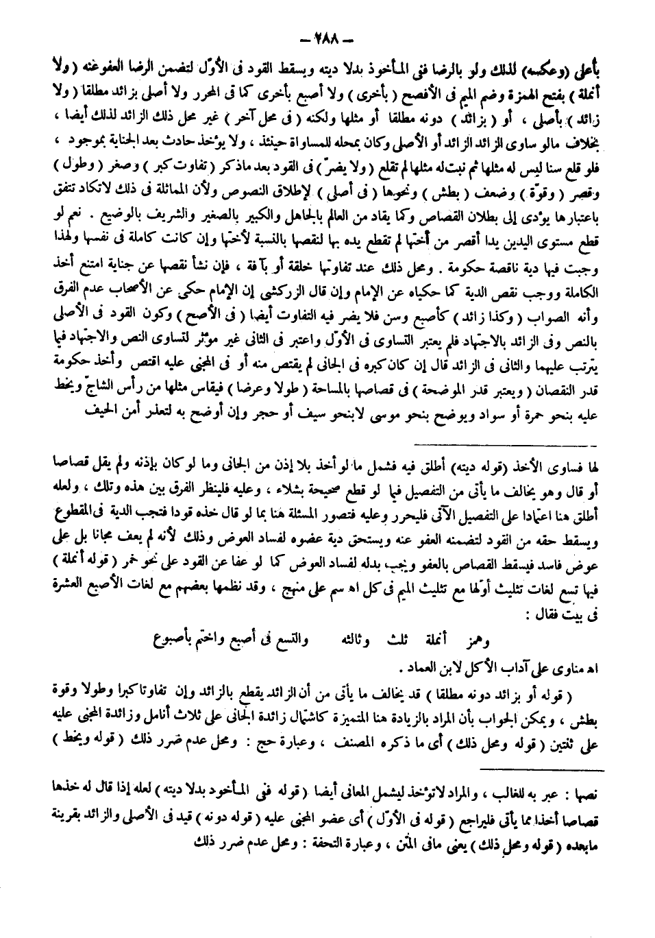 ـــــــــــــــــــــــــــــSلَهَا فَسَاوَى الْأَخْذَ (قَوْلُهُ دِيَتُهُ) أَطْلَقَ فِيهِ فَشَمِلَ مَا لَوْ أَخَذَ بِلَا إذْنٍ مِنْ الْجَانِي وَمَا لَوْ كَانَ بِإِذْنِهِ وَلَمْ يَقُلْ قِصَاصًا أَوْ قَالَ: وَهُوَ يُخَالِفُ مَا يَأْتِي مِنْ التَّفْصِيلِ فِيمَا لَوْ قَطَعَ صَحِيحَةً بِشَلَّاءَ، وَعَلَيْهِ فَلْيُنْظَرْ الْفَرْقُ بَيْنَ هَذِهِ وَتِلْكَ، وَلَعَلَّهُ أَطْلَقَ هُنَا اعْتِمَادًا عَلَى التَّفْصِيلِ الْآتِي فَلْيُحَرَّرْ وَعَلَيْهِ فَتَصَوُّرُ الْمَسْأَلَةِ هُنَا بِمَا لَوْ قَالَ خُذْهُ قَوَدًا فَتَجِبُ الدِّيَةُ فِي الْمَقْطُوعِ وَيَسْقُطُ حَقُّهُ مِنْ الْقَوَدِ لِتَضَمُّنِهِ الْعَفْوَ عَنْهُ، وَيَسْتَحِقُّ دِيَةَ عُضْوِهِ لِفَسَادِ الْعِوَضِ وَذَلِكَ؛ لِأَنَّهُ لَمْ يَعْفُ مَجَّانًا بَلْ عَلَى عِوَضٍ فَاسِدٍ فَيَسْقُطُ الْقِصَاصُ بِالْعَفْوِ وَيَجِبُ بَدَلُهُ لِفَسَادِ الْعِوَضِ كَمَا لَوْ عَفَا عَنْ الْقَوَدِ عَلَى نَحْوِ خَمْرٍ