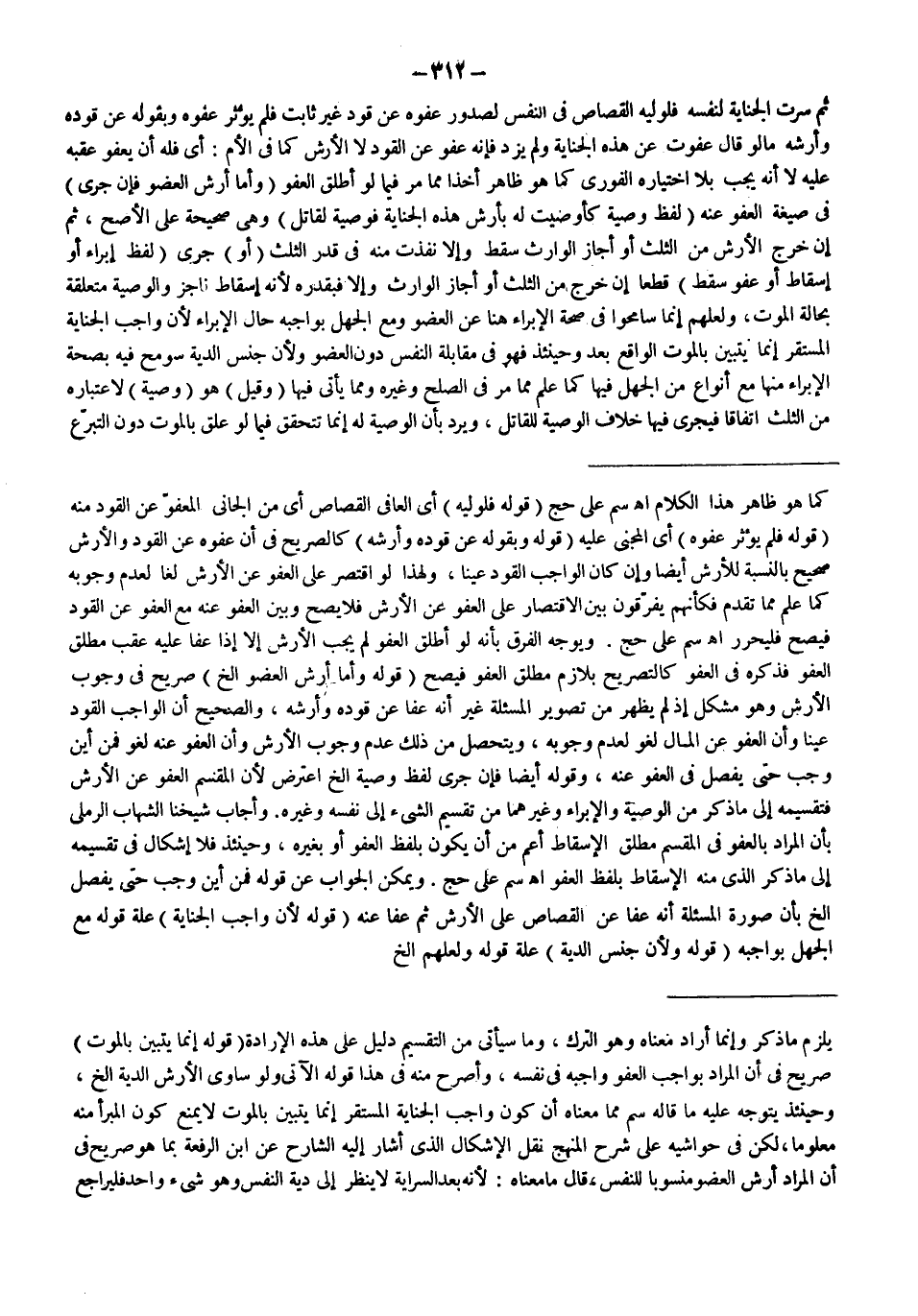 ـــــــــــــــــــــــــــــQيَلْزَمَ مَا ذُكِرَ، وَإِنَّمَا أَرَادَ مَعْنَاهُ وَهُوَ التَّرْكُ، وَمَا سَيَأْتِي مِنْ التَّقْسِيمِ دَلِيلٌ عَلَى هَذِهِ الْإِرَادَةِ (قَوْلُهُ: إنَّمَا يَتَبَيَّنُ بِالْمَوْتِ) صَرِيحٌ فِي أَنَّ الْمُرَادَ بِوَاجِبِ الْعَفْوِ وَاجِبُهُ فِي نَفْسِهِ، وَأَصْرَحُ مِنْهُ فِي هَذَا قَوْلُهُ: الْآتِي وَلَوْ سَاوَى الْأَرْشُ الدِّيَةَ إلَخْ. وَحِينَئِذٍ يَتَوَجَّهُ عَلَيْهِ مَا قَالَهُ سم مِمَّا مَعْنَاهُ أَنَّ كَوْنَ وَاجِبِ الْجِنَايَةِ الْمُسْتَقِرِّ إنَّمَا يَتَبَيَّنُ بِالْمَوْتِ لَا يَمْنَعُ كَوْنَ الْمُبْرَأِ مِنْهُ مَعْلُومًا، لَكِنْ فِي حَوَاشِيهِ عَلَى شَرْحِ الْمَنْهَجِ نَقْلُ الْإِشْكَالِ الَّذِي أَشَارَ إلَيْهِ الشَّارِحُ عَنْ ابْنِ الرِّفْعَةِ بِمَا هُوَ صَرِيحٌ فِي أَنَّ الْمُرَادَ أَرْشُ الْعُضْوِ مَنْسُوبًا لِلنَّفْسِ، قَالَ مَا مَعْنَاهُ؛ لِأَنَّهُ بَعْدَ السِّرَايَةِ لَا يَنْظُرُ إلَى دِيَةِ النَّفْسِ وَهُوَ شَيْءٌ وَاحِدٌ فَلْيُرَاجَعْ