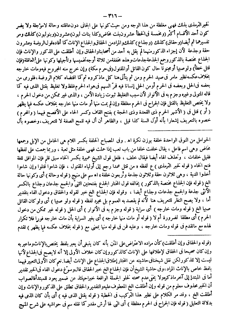 نَعَمْ كَانَ الْأَوْلَى التَّعْبِيرَ فِيهِمَا بِلَفْظٍ خَاصٍّ بِالْإِنَاثِ الْمُرَادِ، وَفِي حَاشِيَةِ الشَّيْخِ أَنَّ فَإِنَّ الْجِذَاعَ إلَخْ. خَبَرُ الْحِقَاقِ قَالَ وَسَوَّغَ دُخُولَ الْفَاءِ فِي الْخَبَرِ تَقْدِيرُ أَمَّا فِي الْمُبْتَدَإِ إلَى آخِرِ مَا ذَكَرَهُ وَلَا يَخْفَى عَدَمُ صِحَّتِهِ لِخُلُوِّ الْجُمْلَةِ الْوَاقِعَةِ خَبَرًا حِينَئِذٍ عَنْ ضَمِيرٍ يَعُودُ لِلْمُبْتَدَأِ فَالصَّوَابُ أَنَّ الْخَبَرَ مَحْذُوفٌ مَعْلُومٌ مِنْ قَوْلِهِ، وَإِنْ أُطْلِقَتْ إلَخْ. الْمَعْطُوفُ عَلَيْهِ وَالتَّقْدِيرُ وَالْحِقَاقُ تُطْلَقُ عَلَى الذُّكُورِ وَالْإِنَاثِ، وَإِنْ أُطْلِقَتْ إلَخْ. وَقَدْ مَرَّ الْكَلَامُ عَلَى نَظِيرِ هَذَا التَّرْكِيبِ فِي الْخُطْبَةِ (قَوْلُهُ: يُقْتَلُ الذِّمِّيُّ فِيهِ) أَيْ بِأَنْ كَانَ الذِّمِّيُّ فِيهِ بِدَلَالَةِ التَّعْلِيلِ (قَوْلُهُ: فَإِنَّ الْجِرَاحَ فِي الْحَرَمِ مُغَلَّظَةٌ) أَيْ الَّتِي لَهَا أَرْشٌ مُقَدَّرٌ كَمَا نَقَلَهُ سم فِي حَوَاشِيهِ عَلَى شَرْحِ الْمَنْهَجِ