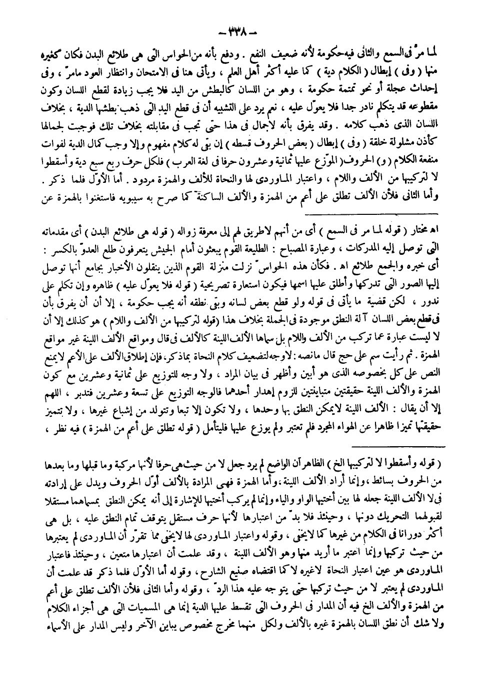 وَأَمَّا الثَّانِي فَلِأَنَّ الْأَلِفَ تُطْلَقُ عَلَى أَعَمَّ مِنْ الْهَمْزَةِ وَالْأَلِفِ السَّاكِنَةِ كَمَا صَرَّحَ بِهِ سِيبَوَيْهِ فَاسْتَغْنَوْا بِالْهَمْزَةِ عَنْ