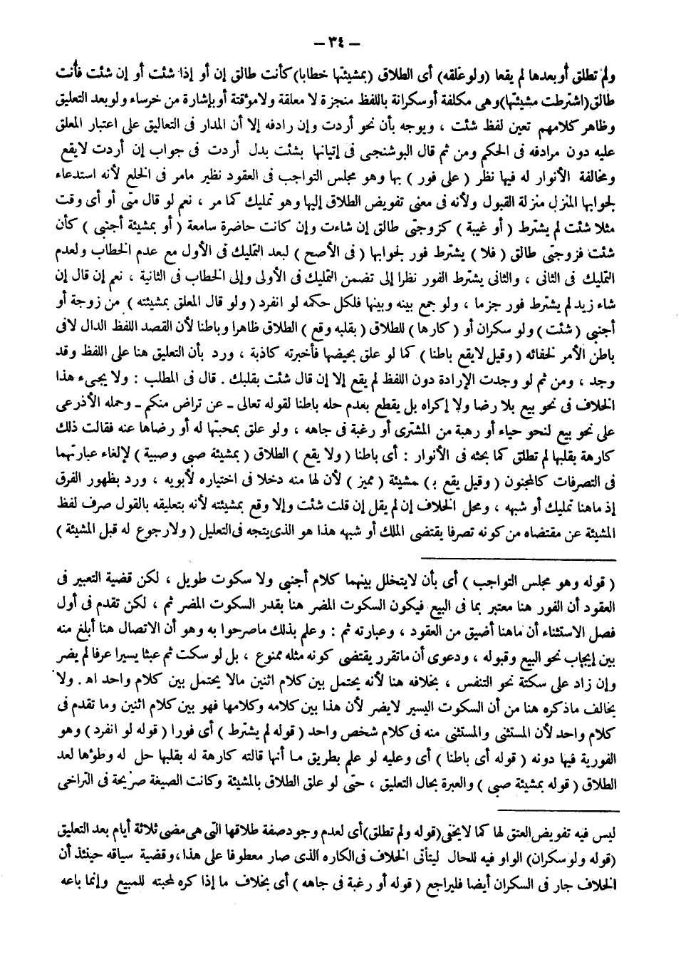 ـــــــــــــــــــــــــــــSقَوْلُهُ وَهُوَ مَجْلِسُ التَّوَاجُبِ) أَيْ بِأَنْ لَا يَتَخَلَّلَ بَيْنَهُمَا كَلَامٌ أَجْنَبِيٌّ وَلَا سُكُوتٌ طَوِيلٌ، لَكِنَّ قَضِيَّةَ التَّعْبِيرِ فِي الْعُقُودِ أَنَّ الْفَوْرَ هُنَا مُعْتَبَرٌ بِمَا فِي الْبَيْعِ فَيَكُونُ السُّكُوتُ الْمُضِرُّ هُنَا بِقَدْرِ السُّكُوتِ الْمُضِرِّ ثَمَّ، لَكِنْ تَقَدَّمَ فِي أَوَّلِ فَصْلِ الِاسْتِثْنَاءِ أَنَّ مَا هُنَا أَضْيَقُ مِنْ الْعُقُودِ، وَعِبَارَتُهُ ثَمَّ: وَعُلِمَ بِذَلِكَ مَا صَرَّحُوا بِهِ وَهُوَ أَنَّ الِاتِّصَالَ هُنَا أَبْلَغُ مِنْهُ بَيْنَ إيجَابِ نَحْوِ الْبَيْعِ وَقَبُولِهِ، وَدَعْوَى أَنَّ مَا تَقَرَّرَ يَقْتَضِي كَوْنَهُ مِثْلَهُ مَمْنُوعٌ، بَلْ لَوْ سَكَتَ ثُمَّ عَبَثًا يَسِيرًا عُرْفًا لَمْ يَضُرَّ وَإِنْ زَادَ عَلَى سَكْتَةٍ نَحْوَ التَّنَفُّسِ، بِخِلَافِهِ هُنَا لِأَنَّهُ يَحْتَمِلُ بَيْنَ كَلَامِ اثْنَيْنِ مَا لَا يَحْتَمِلُ بَيْنَ كَلَامِ وَاحِدٍ اهـ. وَلَا يُخَالِفُ مَا ذَكَرَهُ هُنَا مِنْ أَنَّ السُّكُوتَ الْيَسِيرَ لَا يَضُرُّ لِأَنَّ هَذَا بَيْنَ كَلَامِهِ وَكَلَامِهَا فَهُوَ بَيْنَ كَلَامِ اثْنَيْنِ وَمَا تَقَدَّمَ فِي كَلَامِ وَاحِدٍ لِأَنَّ الْمُسْتَثْنَى وَالْمُسْتَثْنَى مِنْهُ فِي كَلَامِ شَخْصٍ وَاحِدٍ (قَوْلُهُ: لَمْ يُشْتَرَطْ) أَيْ فَوْرًا (قَوْلُهُ لَوْ انْفَرَدَ) وَهُوَ الْفَوْرِيَّةُ فِيهَا دُونَهُ (قَوْلُهُ أَيْ بَاطِنًا) أَيْ وَعَلَيْهِ لَوْ عَلِمَ بِطَرِيقٍ مَا أَنَّهَا قَالَتْهُ كَارِهَةً لَهُ بِقَلْبِهَا حَلَّ لَهُ وَطْؤُهَا لِعَدِّ الطَّلَاقِ.