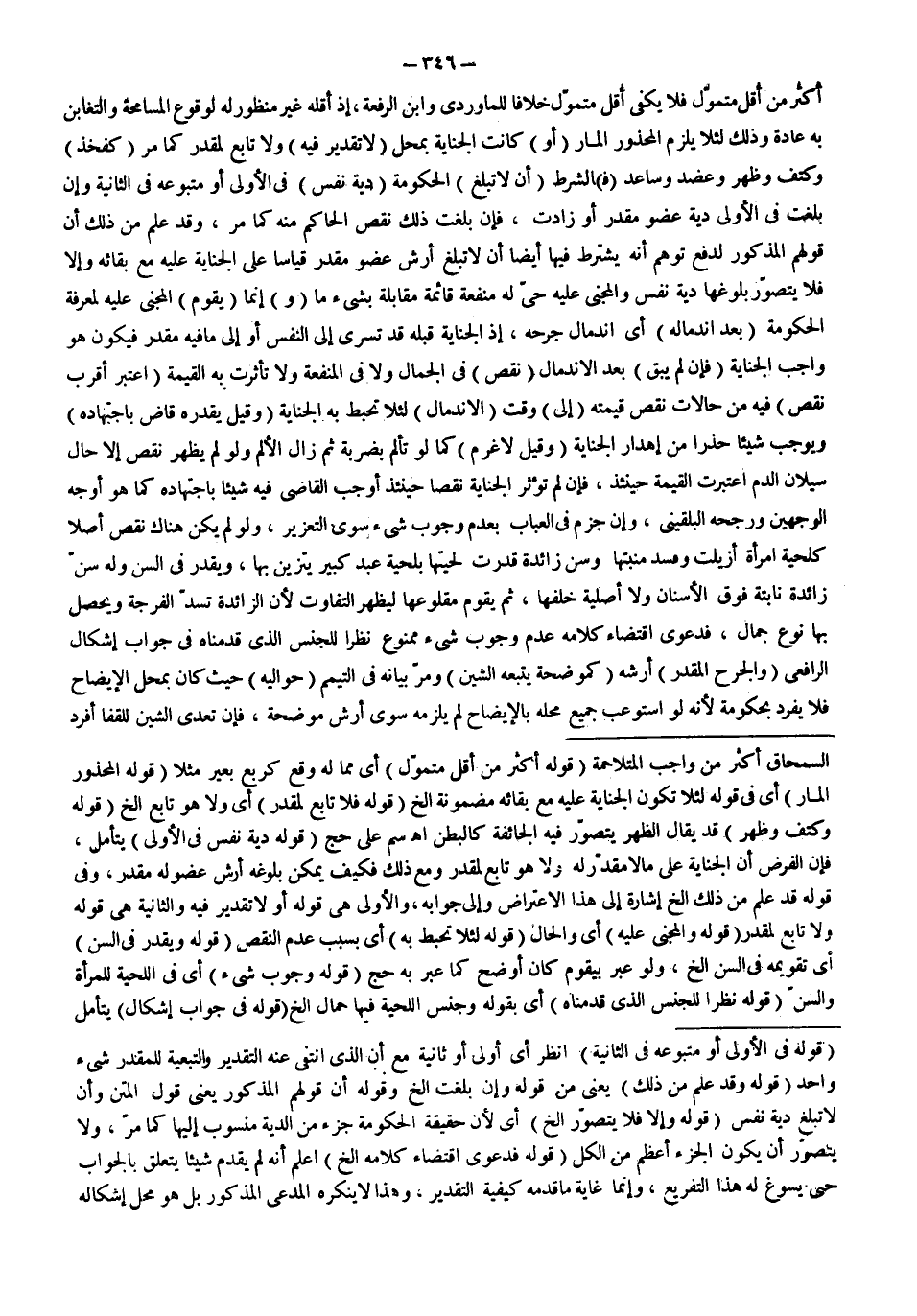 ـــــــــــــــــــــــــــــQقَوْلُهُ: فِي الْأُولَى أَوْ مَتْبُوعَهُ فِي الثَّانِيَةِ) اُنْظُرْ أَيْ أُولَى أَوْ ثَانِيَةٌ مَعَ أَنَّ الَّذِي انْتَفَى عَنْهُ التَّقْدِيرُ وَالتَّبَعِيَّةُ لِلْمُقَدَّرِ شَيْءٌ وَاحِدٌ (قَوْلُهُ: وَقَدْ عُلِمَ مِنْ ذَلِكَ) يَعْنِي: مِنْ قَوْلِهِ، وَإِنْ بَلَغَتْ إلَخْ. وَقَوْلُهُ: أَنَّ قَوْلَهُمْ الْمَذْكُورَ يَعْنِي: قَوْلَ الْمَتْنِ وَأَنْ لَا تَبْلُغَ دِيَةَ نَفْسٍ (قَوْلُهُ: وَإِلَّا فَلَا يُتَصَوَّرُ إلَخْ.) أَيْ لِأَنَّ حَقِيقَةَ الْحُكُومَةِ جُزْءٌ مِنْ الدِّيَةِ مَنْسُوبٌ إلَيْهَا كَمَا مَرَّ، وَلَا يُتَصَوَّرُ أَنْ يَكُونَ الْجُزْءُ أَعْظَمَ مِنْ الْكُلِّ (قَوْلُهُ: فَدَعْوَى اقْتِضَاءِ كَلَامِهِ إلَخْ.) اعْلَمْ أَنَّهُ لَمْ يُقَدِّمْ شَيْئًا يَتَعَلَّقُ بِالْجَوَابِ حَتَّى يُسَوَّغَ لَهُ هَذَا التَّفْرِيعُ، وَإِنَّمَا غَايَةُ مَا قَدَّمَهُ كَيْفِيَّةُ التَّقْدِيرِ، وَهَذَا لَا يُنْكِرُهُ الْمُدَّعِي الْمَذْكُورُ بَلْ هُوَ مَحَلُّ إشْكَالِهِ