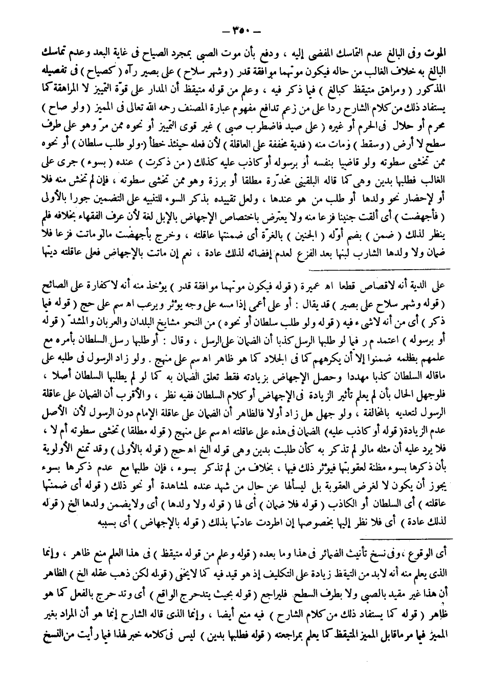 (قَوْلُهُ: وَعُلِمَ مِنْ قَوْلِهِ مُتَيَقِّظٍ) فِي هَذَا الْعِلْمِ مَنْعٌ ظَاهِرٌ، وَإِنَّمَا الَّذِي يُعْلَمُ مِنْهُ أَنَّهُ لَا بُدَّ مِنْ التَّيَقُّظِ زِيَادَةً عَلَى التَّكْلِيفِ إذْ هُوَ قَيْدٌ فِيهِ كَمَا لَا يَخْفَى (قَوْلُهُ: لَكِنْ ذَهَبَ عَقْلُهُ إلَخْ.) الظَّاهِرُ أَنَّ هَذَا غَيْرُ مُقَيَّدٍ بِالصَّبِيِّ وَلَا بِطَرَفِ السَّطْحِ فَلْيُرَاجَعْ (قَوْلُهُ: بِحَيْثُ يَتَدَحْرَجُ الْوَاقِعُ) أَيْ وَتَدَحْرَجَ بِالْفِعْلِ كَمَا هُوَ ظَاهِرٌ (قَوْلُهُ: كَمَا يُسْتَفَادُ ذَلِكَ مِنْ كَلَامِ الشَّارِحِ) فِيهِ مَنْعٌ أَيْضًا، وَإِنَّمَا الَّذِي قَالَهُ الشَّارِحُ إنَّمَا هُوَ أَنَّ الْمُرَادَ بِغَيْرِ الْمُمَيِّزِ فِيمَا مَرَّ مَا قَابَلَ الْمُمَيِّزَ الْمُتَيَقِّظَ كَمَا يُعْلَمُ بِمُرَاجَعَتِهِ