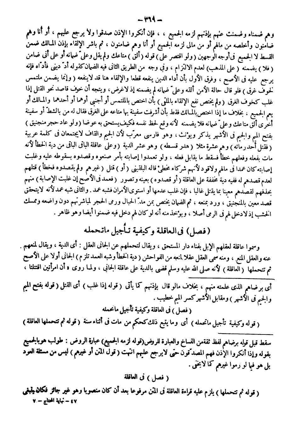 (فَصْلٌ) فِي الْعَاقِلَةِ (قَوْلُهُ: ثُمَّ تَتَحَمَّلُهَا) يَلْزَمُ عَلَيْهِ قِرَاءَةُ. الْعَاقِلَةِ فِي الْمَتْنِ مَرْفُوعًا بَعْدَ أَنْ كَانَ مَنْصُوبًا وَهُوَ غَيْرُ جَائِزٍ فَكَانَ يَنْبَغِي