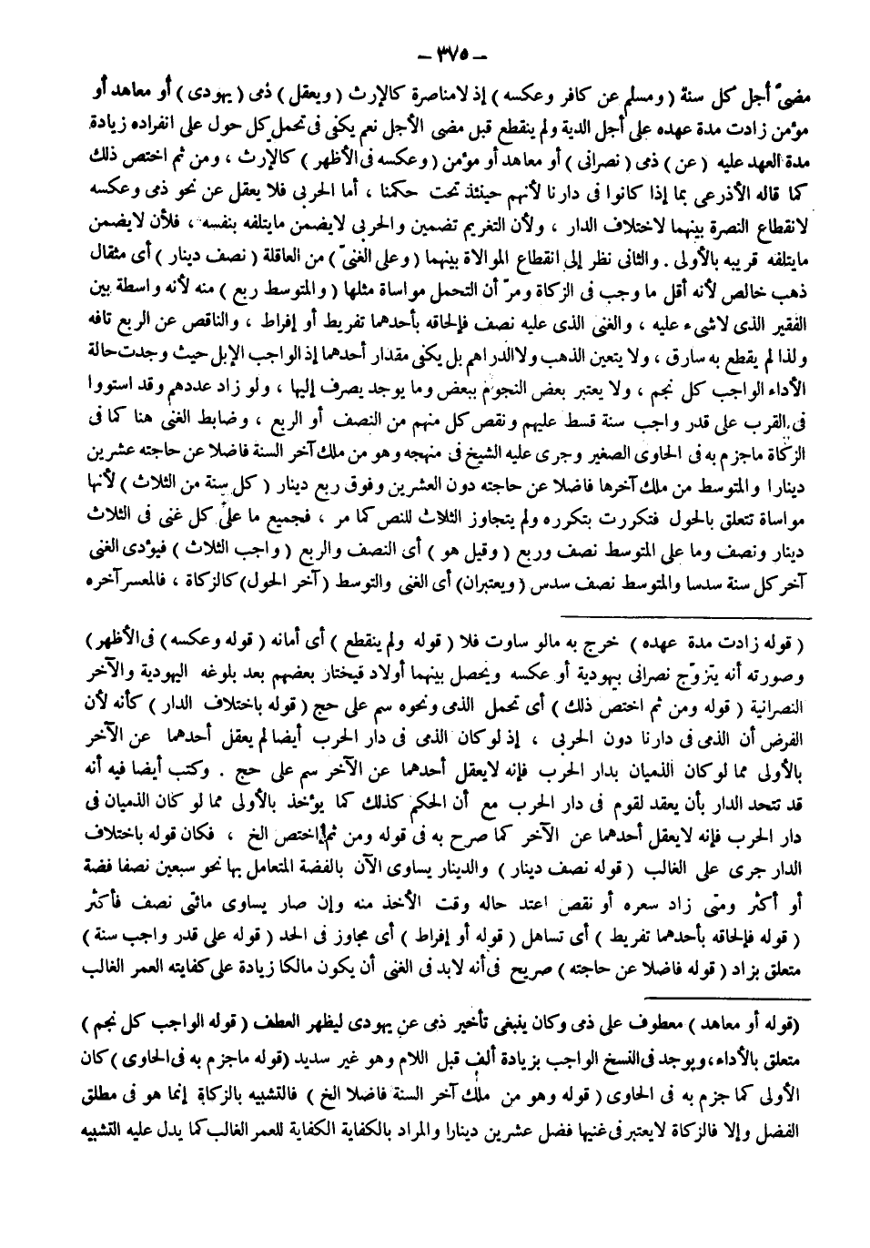 (قَوْلُهُ: الْوَاجِبُ كُلُّ نَجْمٍ) مُتَعَلِّقٌ بِالْأَدَاءِ، وَيُوجَدُ فِي النُّسَخِ الْوَاجِبُ بِزِيَادَةِ أَلِفٍ قَبْلَ اللَّامِ وَهُوَ غَيْرُ سَدِيدٍ (قَوْلُهُ: مَا جَزَمَ بِهِ فِي الْحَاوِي) كَانَ الْأَوْلَى كَمَا جَزَمَ بِهِ فِي الْحَاوِي (قَوْلُهُ: وَهُوَ مَنْ مَلَكَ آخِرَ السَّنَةِ فَاضِلًا إلَخْ.) فَالتَّشْبِيهُ بِالزَّكَاةِ إنَّمَا هُوَ فِي مُطْلَقِ الْفَضْلِ، وَإِلَّا فَالزَّكَاةُ لَا يُعْتَبَرُ فِي غَنِيِّهَا فَضْلُ عِشْرِينَ دِينَارًا وَالْمُرَادُ بِالْكِفَايَةِ الْكِفَايَةُ لِلْعُمْرِ الْغَالِبِ كَمَا يَدُلُّ عَلَيْهِ التَّشْبِيهُ