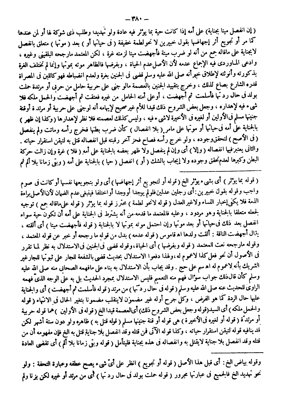 (قَوْلُهُ: فِي حَالِ رِدَّتِهَا) مِنْ مُرْتَدٍّ (قَوْلُهُ: فَأَسْلَمَتْ ثُمَّ أُجْهِضَتْ) أَيْ وَالْجِنَايَةُ عَلَيْهَا حَالَ الرِّدَّةِ كَمَا هُوَ الْفَرْضُ، وَكُلُّ جُرْحٍ أَوَّلُهُ غَيْرُ مَضْمُونٍ لَا يَنْقَلِبُ مَضْمُونًا بِتَغَيُّرِ الْحَالِ فِي الِانْتِهَاءِ