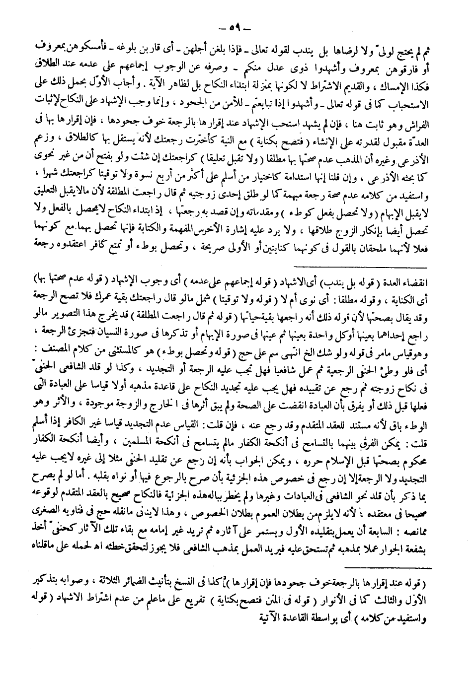 ـــــــــــــــــــــــــــــSانْقِضَاءِ الْعِدَّةِ (قَوْلُهُ: بَلْ يُنْدَبُ) أَيْ الْإِشْهَادُ (قَوْلُهُ: إجْمَاعُهُمْ عَلَى عَدَمِهِ) أَيْ وُجُوبِ الْإِشْهَادِ (قَوْلُهُ: عَدَمُ صِحَّتِهَا بِهَا) أَيْ الْكِنَايَةِ، وَقَوْلُهُ مُطْلَقًا: أَيْ نَوَى أَمْ لَا.