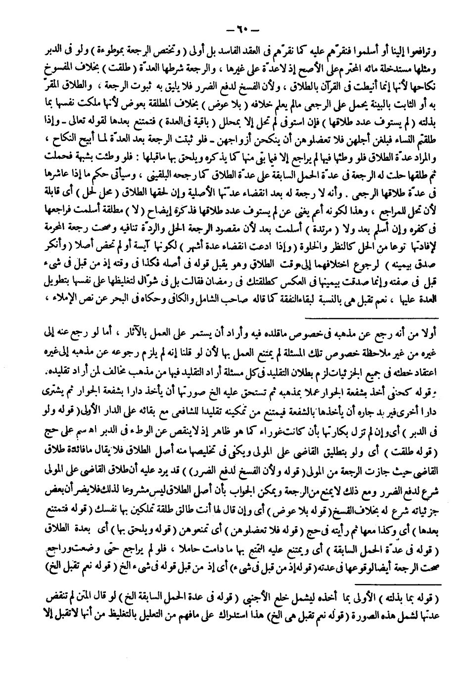 ـــــــــــــــــــــــــــــSأَوَّلًا مِنْ أَنَّهُ رَجَعَ عَنْ مَذْهَبِهِ فِي خُصُوصِ مَا قَلَّدَهُ فِيهِ وَأَرَادَ أَنْ يَسْتَمِرَّ عَلَى الْعَمَلِ بِالْآثَارِ، أَمَّا لَوْ رَجَعَ عَنْهُ إلَى غَيْرِهِ مِنْ غَيْرِ مُلَاحَظَةِ خُصُوصِ تِلْكَ الْمَسْأَلَةِ لَمْ يَمْتَنِعْ الْعَمَلُ بِهَا لَأَنْ لَوْ قُلْنَا إنَّهُ لَمْ يَلْزَمْ رُجُوعُهُ عَنْ مَذْهَبِهِ إلَى غَيْرِهِ اعْتِقَادَ خَطَئِهِ فِي جَمِيعِ الْجُزْئِيَّاتِ لَزِمَ بُطْلَانُ التَّقْلِيدِ فِي كُلِّ مَسْأَلَةٍ أَرَادَ التَّقْلِيدَ فِيهَا مِنْ مَذْهَبٍ مُخَالِفٍ لِمَنْ أَرَادَ تَقْلِيدَهُ. وَقَوْلُهُ كَحَنَفِيٍّ أَخَذَ بِشُفْعَةِ الْجِوَارِ عَمَلًا بِمَذْهَبِهِ ثُمَّ تَسْتَحِقَّ عَلَيْهِ إلَخْ صُورَتُهَا أَنْ يَأْخُذَ دَارًا بِشُفْعَةِ الْجِوَارِ ثُمَّ يَشْتَرِيَ دَارًا أُخْرَى فَيُرِيدُ جَارُهُ أَنْ يَأْخُذَهَا بِالشُّفْعَةِ فَيَمْتَنِعُ مِنْ تَمْكِينِهِ تَقْلِيدًا لِلشَّافِعِيِّ مَعَ بَقَائِهِ عَلَى الدَّارِ الْأُولَى.
