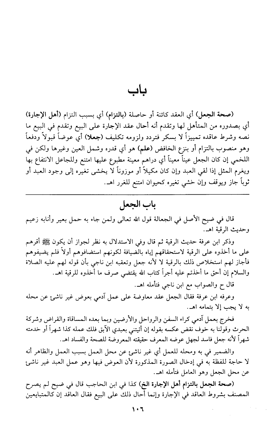 فخرج بعمل آدمي كراء السفن والرواحل والأرضين وبما بعده المساقاة والقراض وشركة الحرث وقولنا به خوف نقض عكسه بقوله إن أتيتني بعبدي الآبق فلك عمله كذا شهرًا أو خدمته شهرًا لأنه جعل فاسد لجهل عوضه المعرف حقيقته المعروضة للصحة والفساد اهـ.