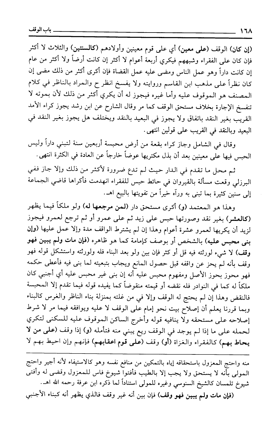 ثم محل ما تقدم في الدار حيث لم تدع ضرورة لأكثر من ذلك وإلا جاز ففي البرزلي وقعت مسألة بالقيروان في حائط حبس للفقراء انهدمت فأكراها قاضي الجماعة إلى سنين كثيرة بما تبنى به ورآه خيرًا من تفويتها بالبيع اهـ.