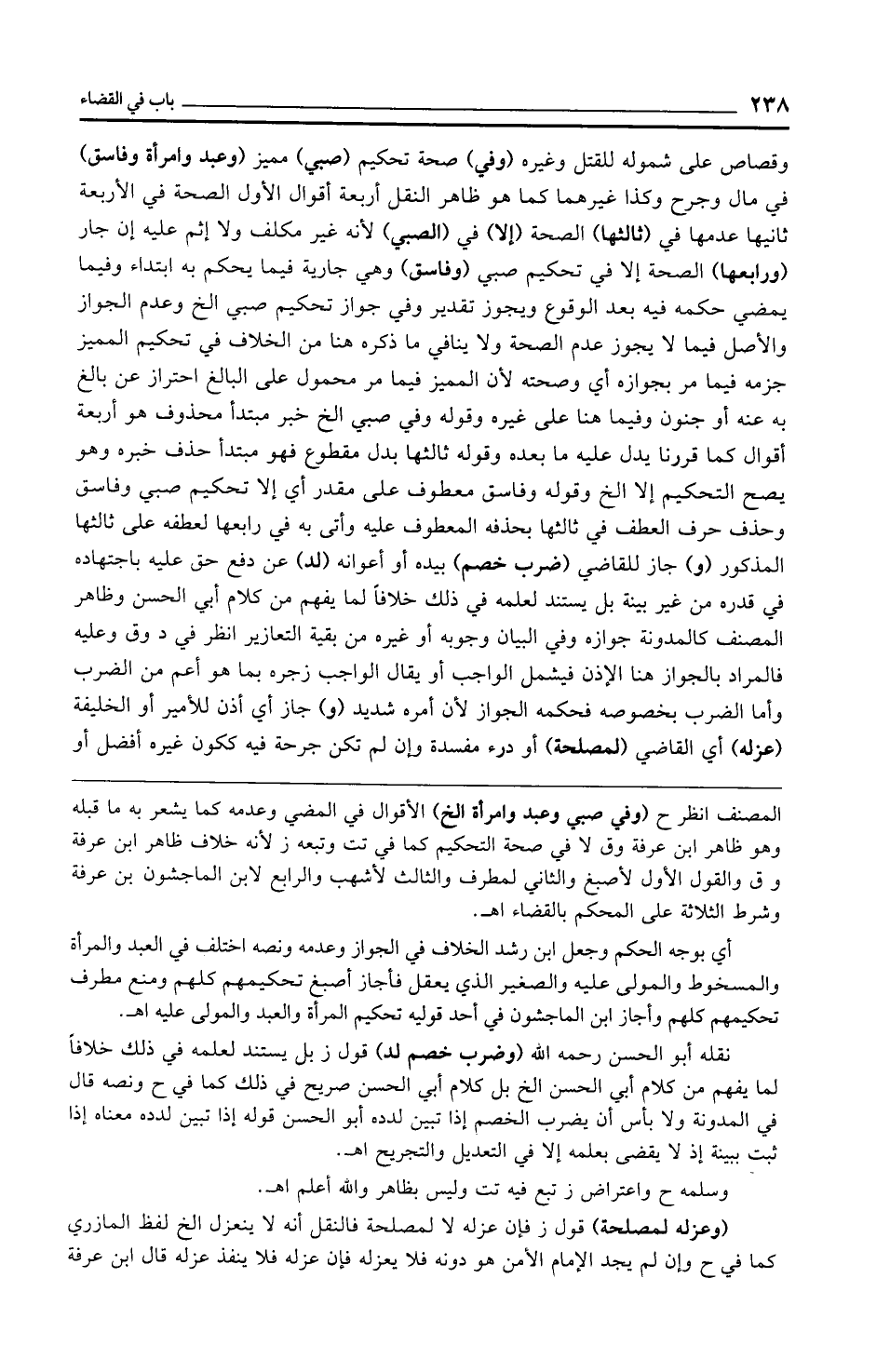 المصنف انظر ح (وفي صبي وعبد وامرأة الخ) الأقوال في المضي وعدمه كما يشعر به ما قبله وهو ظاهر ابن عرفة وق لا في صحة التحكيم كما في تت وتبعه ز لأنه خلاف ظاهر ابن عرفة وق والقول الأول لأصبغ والثاني لمطرف والثالث لأشهب والرابع لابن الماجشون بن عرفة وشرط الثلاثة على المحكم بالقضاء اهـ.
