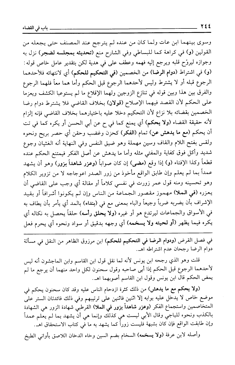 في فصل القرض (ودوام الرضا في التحكيم للحكم) ابن مرزوق الظاهر من النقل في مسألة دوام الرضا رجحان عدم اشتراطه اهـ.
