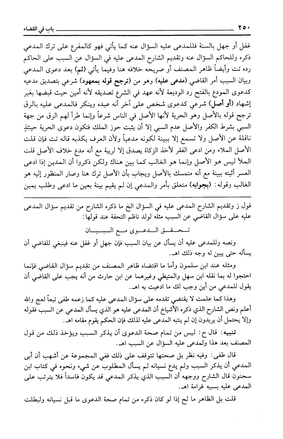 وهذا كما علمت لا يقتضي تقدمه على سؤال المدعى عليه كما زعمه طفى تبعًا لعج والله أعلم ونص الشارح الذي ذكره الأشياخ أن المدعى عليه هو الذي يسأل المدعي عن السبب فقوله وإلا يحتمل أن يريدون إن لم ينتبه المدعى عليه لذلك فإن الحكم يقوم مقامه اهـ.