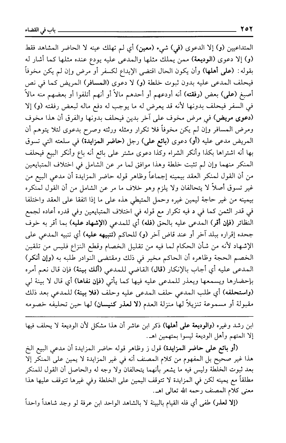 ابن رشد وغيره (والوديعة على أهلها) ذكر ابن عاشر أن هذا مشكل لأن الوديعة لا يحلف فيها إلا المتهم وأهل الوديعة ليسوا بمتهمين اهـ.