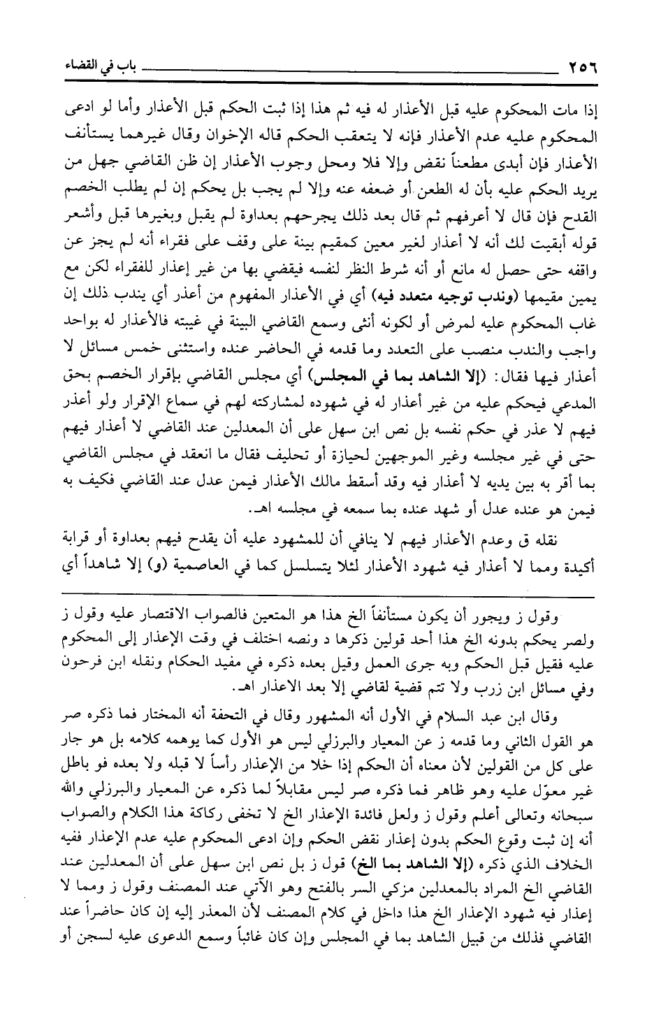 وقال ابن عبد السلام في الأول أنه المشهور وقال في التحفة أنه المختار فما ذكره صر هو القول الثاني وما قدمه ز عن المعيار والبرزلي ليس هو الأول كما يوهمه كلامه بل هو جار على كل من القولين لأن معناه أن الحكم إذا خلا من الإعذار رأسًا لا قبله ولا بعده هو باطل غير معوّل عليه وهو ظاهر فما ذكره صر ليس مقابلًا لما ذكره عن المعيار والبرزلي والله سبحانه وتعالى أعلم وقول ز ولعل فائدة الإعذار الخ لا تخفى ركاكة هذا الكلام والصواب أنه إن ثبت وقوع الحكم بدون إعذار نقض الحكم وإن ادعى المحكوم عليه عدم الإعذار ففيه الخلاف الذي ذكره (إلا الشاهد بما الخ) قول ز بل نص ابن سهل على أن المعدلين عند
