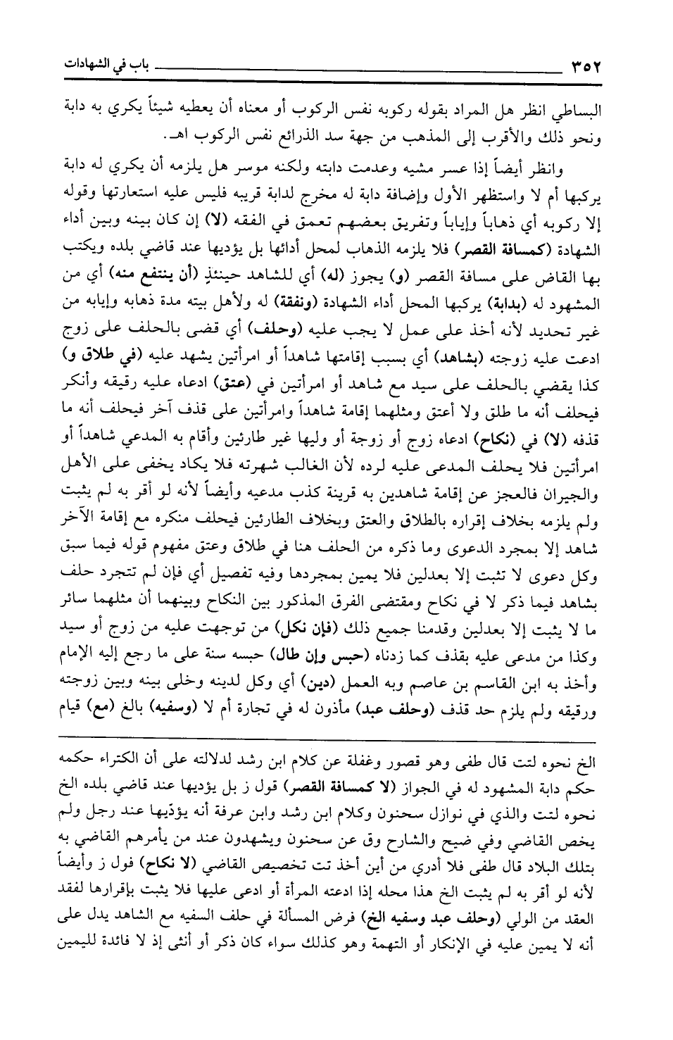 الخ نحوه لتت قال طفى وهو قصور وغفلة عن كلام ابن رشد لدلالته على أن الكتراء حكمه حكم دابة المشهود له في الجواز (لا كمسافة القصر) قول ز بل يؤديها عند قاضي بلده الخ نحوه لتت والذي في نوازل سحنون وكلام ابن رشد وابن عرفة أنه يؤدّيها عند رجل ولم يخص القاضي وفي ضيح والشارح وق عن سحنون ويشهدون عند من يأمرهم القاضي به بتلك البلاد قال طفى فلا أدري من أين أخذ تت تخصيص القاضي (لا نكاح) قول ز وأيضًا لأنه لو أقر به لم يثبت الخ هذا محله إذا ادعته المرأة أو ادعى عليها فلا يثبت بإقرارها لفقد العقد من الولي (وحلف عبد وسفيه الخ) فرض المسألة في حلف السفيه مع الشاهد يدل على أنه لا يمين عليه في الإنكار أو التهمة وهو كذلك سواء كان ذكر أو أنثى إذ لا فائدة لليمين