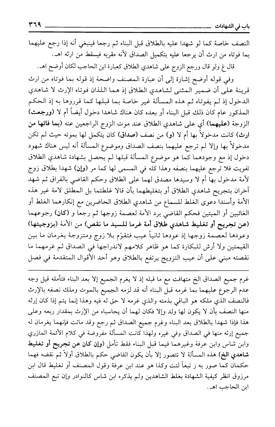 قال غ ولو قال ورجع الزوج على شاهدي الطلاق كعبارة ابن الحاجب لكان أوضح اهـ.