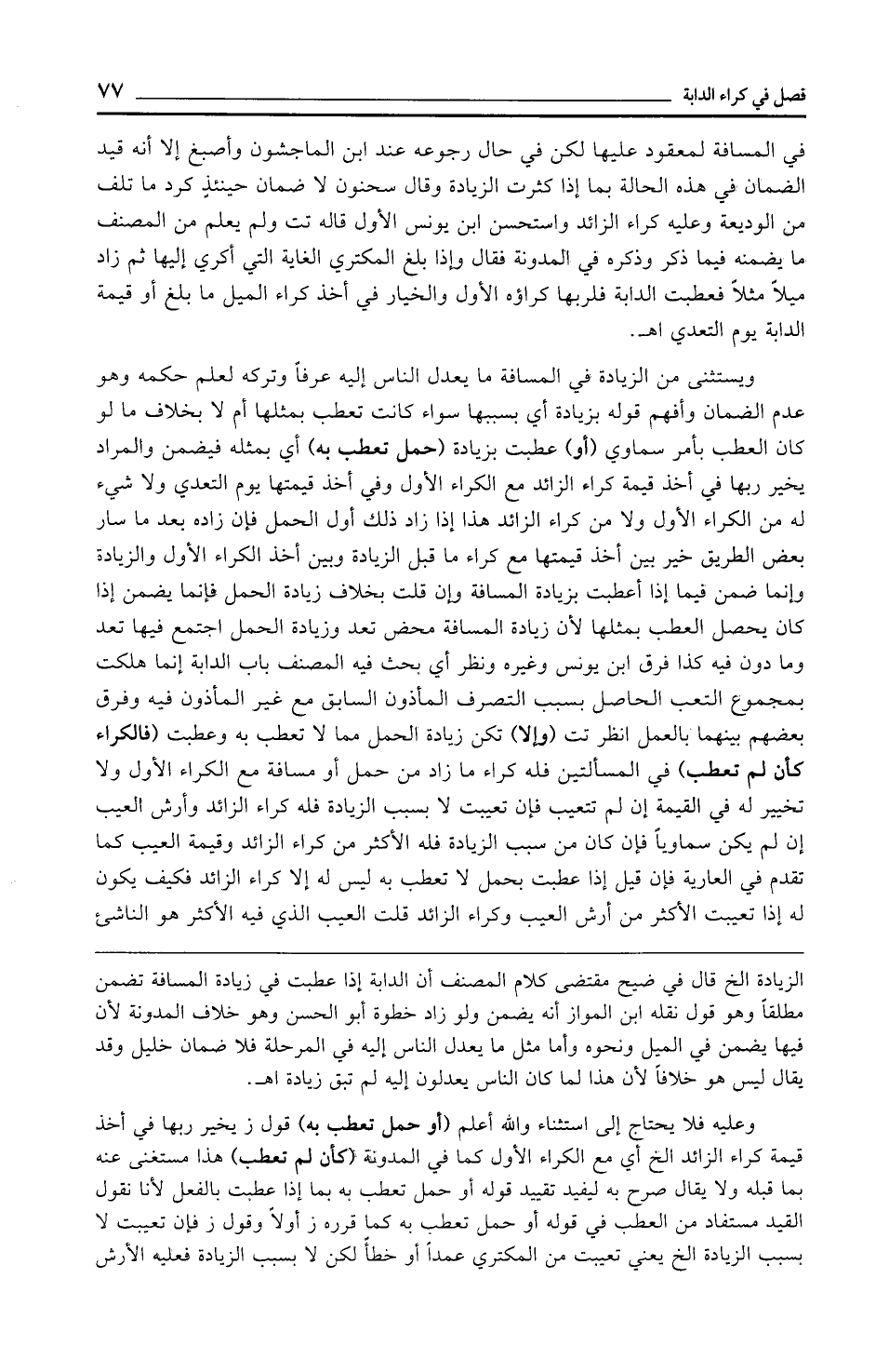 ويستثنى من الزيادة في المسافة ما يعدل الناس إليه عرفًا وتركه لعلم حكمه وهو عدم الضمان وأفهم قوله بزيادة أي بسببها سواء كانت تعطب بمثلها أم لا بخلاف ما لو كان العطب بأمر سماوي (أو) عطبت بزيادة (حمل تعطب به) أي بمثله فيضمن والمراد يخير ربها في أخذ قيمة كراء الزائد مع الكراء الأول وفي أخذ قيمتها يوم التعدي ولا شيء له من الكراء الأول ولا من كراء الزائد هذا إذا زاد ذلك أول الحمل فإن زاده بعد ما سار بعض الطريق خير بين أخذ قيمتها مع كراء ما قبل الزيادة وبين أخذ الكراء الأول والزيادة وإنما ضمن فيما إذا أعطبت بزيادة المسافة وإن قلت بخلاف زيادة الحمل فإنما يضمن إذا كان يحصل العطب بمثلها لأن زيادة المسافة محض تعد وزيادة الحمل اجتمع فيها تعد وما دون فيه كذا فرق ابن يونس وغيره ونظر أي بحث فيه المصنف باب الدابة إنما هلكت بمجموع التعب الحاصل بسبب التصرف المأذون السابق مع غير المأذون فيه وفرق بعضهم بينهما بالعمل انظر تت (وإلا) تكن زيادة الحمل مما لا تعطب به وعطبت (فالكراء كأن لم تعطب) في المسألتين فله كراء ما زاد من حمل أو مسافة مع الكراء الأول ولا تخيير له في القيمة إن لم تتعيب فإن تعيبت لا بسبب الزيادة فله كراء الزائد وأرش العيب إن لم يكن سماويًّا فإن كان من سبب الزيادة فله الأكثر من كراء الزائد وقيمة العيب كما تقدم في العارية فإن قيل إذا عطبت بحمل لا تعطب به ليس له إلا كراء الزائد فكيف يكون له إذا تعيبت الأكثر من أرش العيب وكراء الزائد قلت العيب الذي فيه الأكثر هو الناشئ
