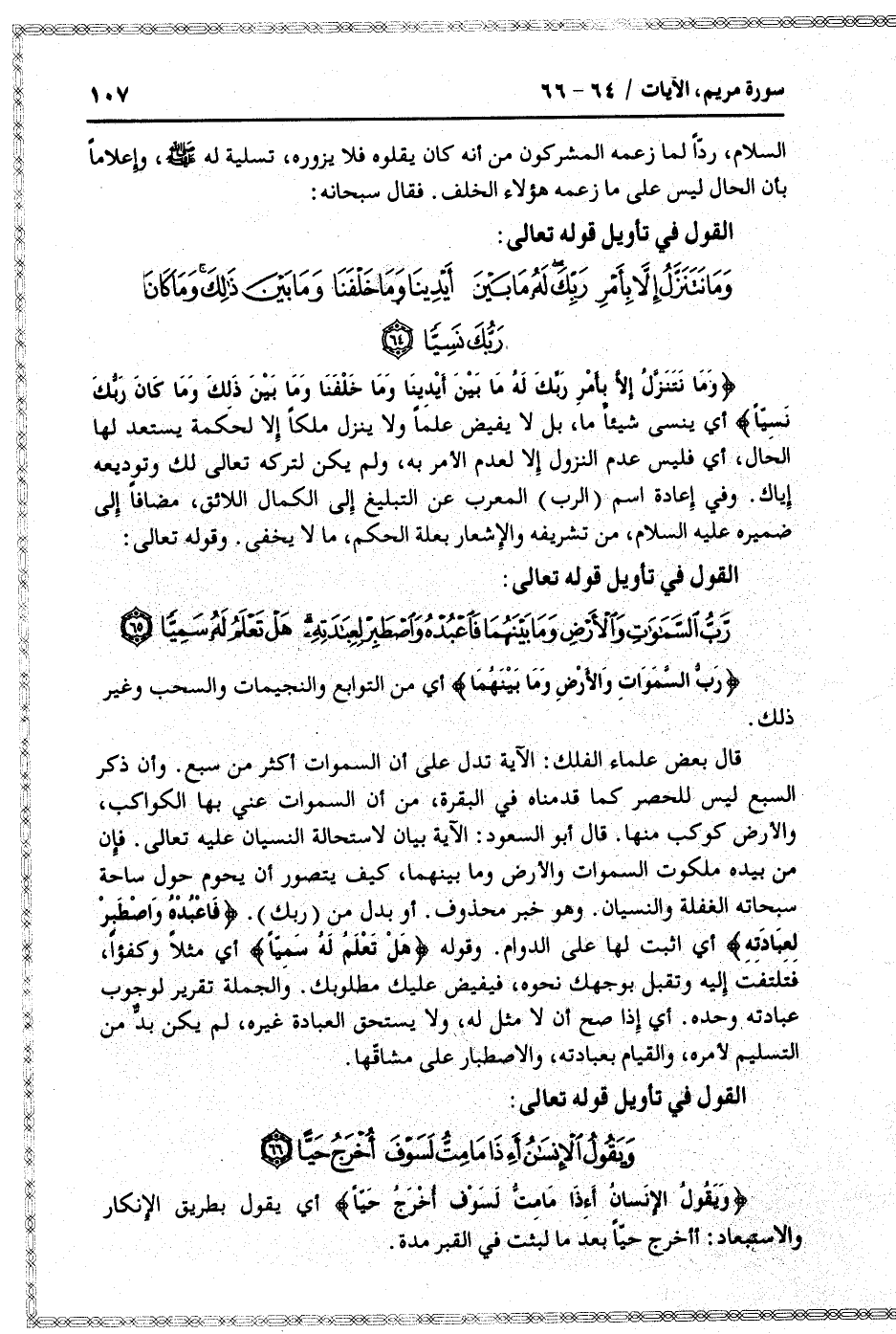 وَما نَتَنَزَّلُ إِلاَّ بِأَمْرِ رَبِّكَ لَهُ ما بَيْنَ أَيْدِينا وَما خَلْفَنا وَما بَيْنَ ذلِكَ وَما كانَ رَبُّكَ نَسِيًّا (64)