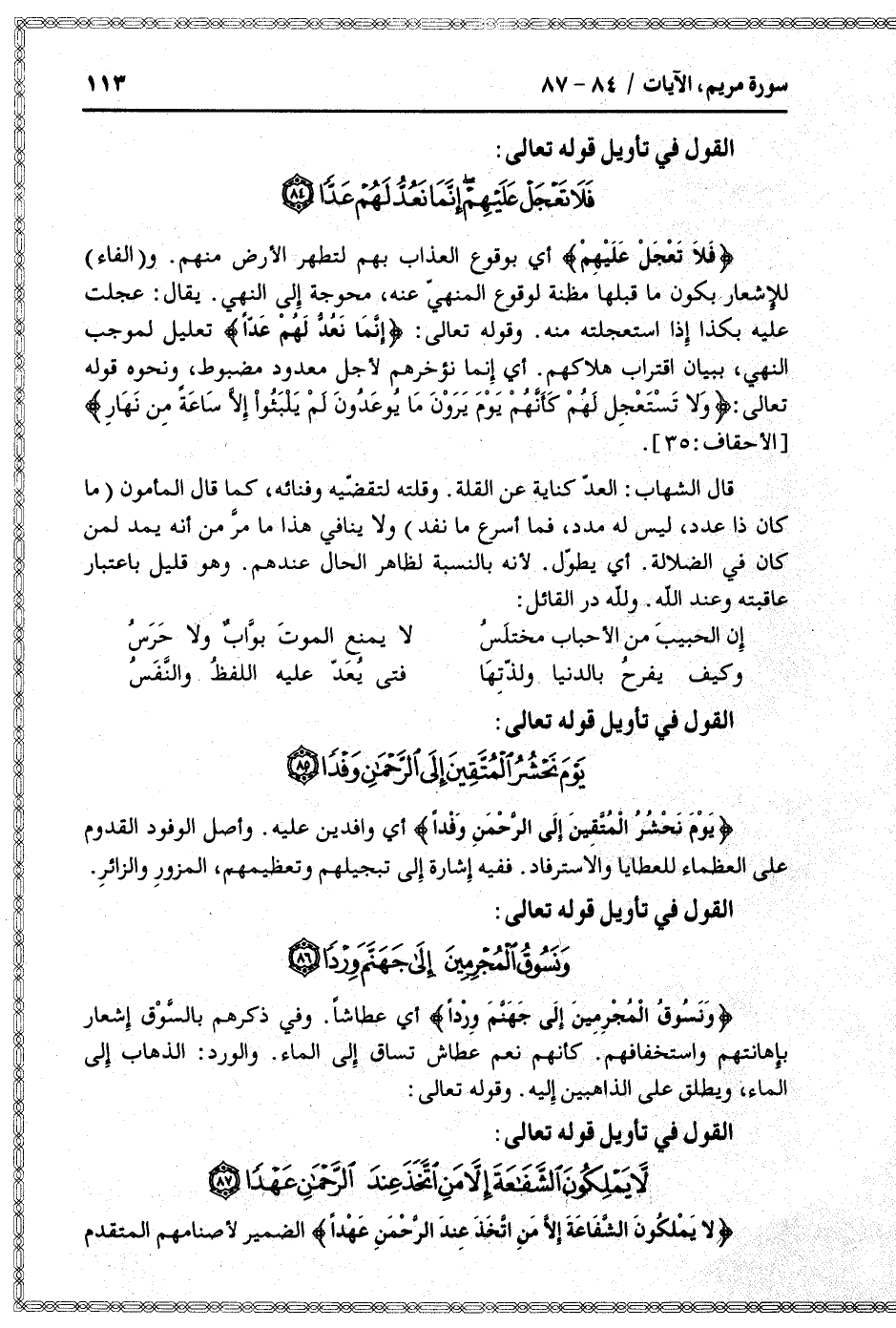 القول في تأويل قوله تعالى: [سورة مريم (19) : آية 87]