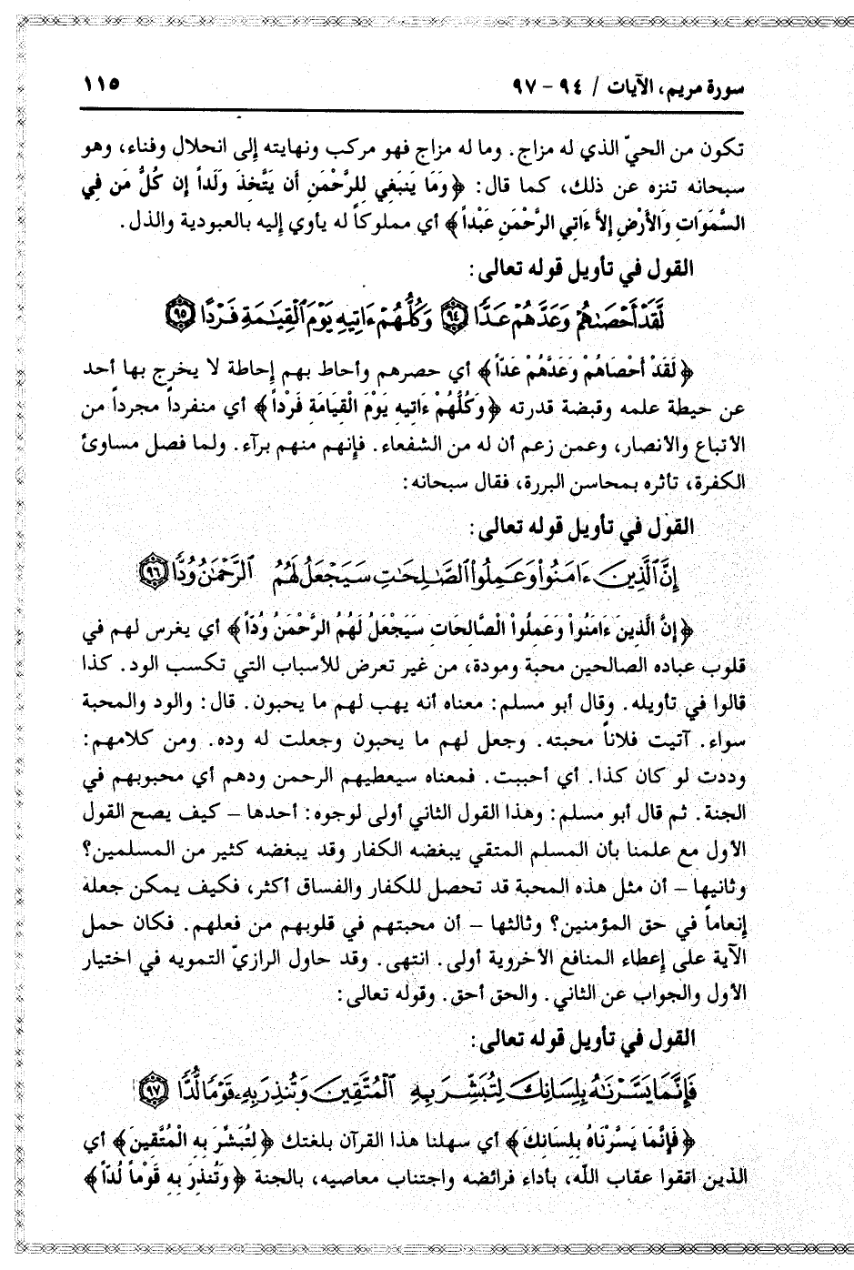 القول في تأويل قوله تعالى: [سورة مريم (19) : آية 97]