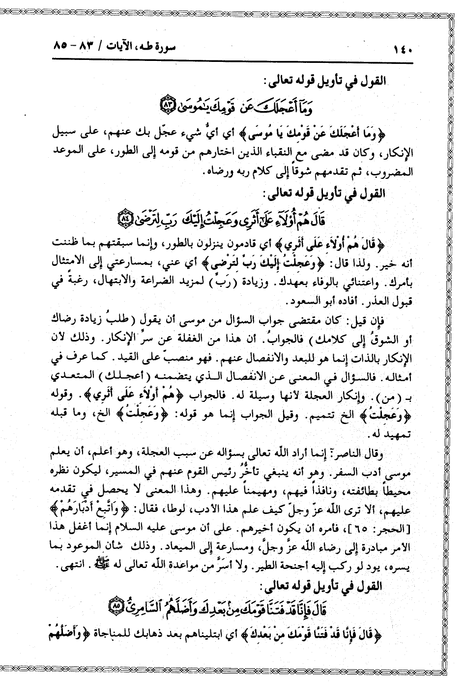 القول في تأويل قوله تعالى: [سورة طه (20) : آية 83]
