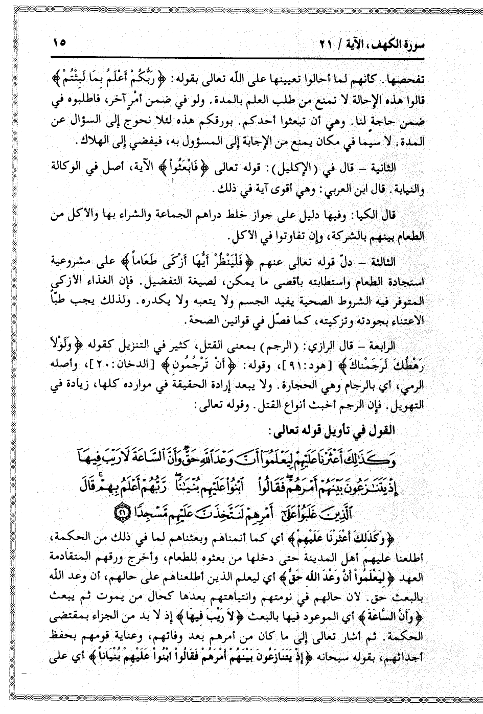 وَكَذلِكَ أَعْثَرْنا عَلَيْهِمْ لِيَعْلَمُوا أَنَّ وَعْدَ اللَّهِ حَقٌّ وَأَنَّ السَّاعَةَ لا رَيْبَ فِيها إِذْ يَتَنازَعُونَ بَيْنَهُمْ أَمْرَهُمْ فَقالُوا ابْنُوا عَلَيْهِمْ بُنْياناً رَبُّهُمْ أَعْلَمُ بِهِمْ قالَ الَّذِينَ غَلَبُوا عَلى أَمْرِهِمْ لَنَتَّخِذَنَّ عَلَيْهِمْ مَسْجِداً (21)