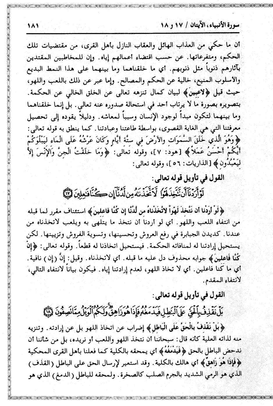 القول في تأويل قوله تعالى: [سورة الأنبياء (21) : آية 18]