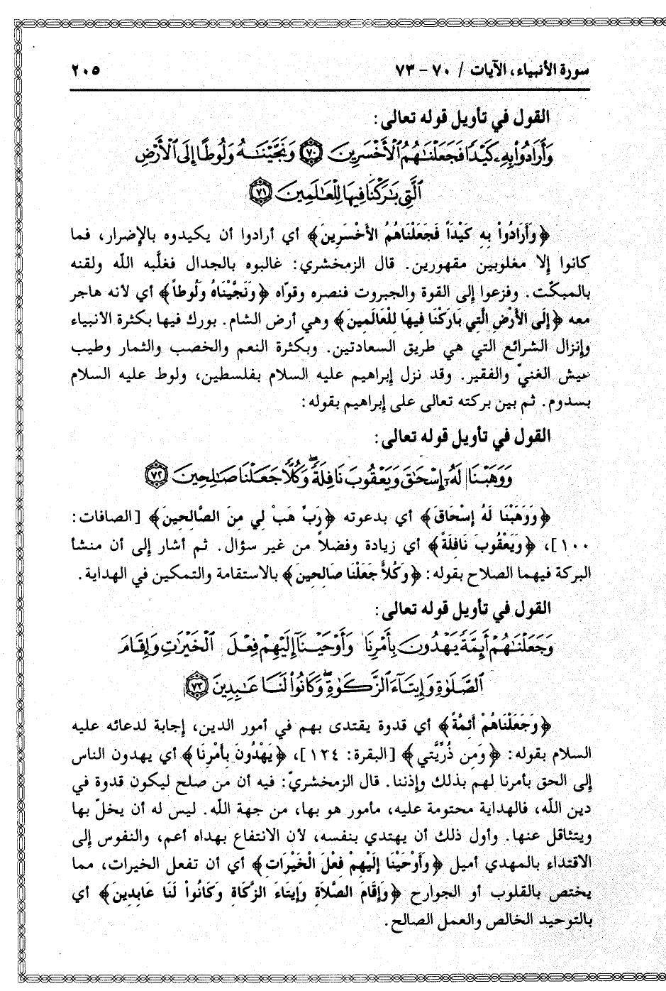 وَجَعَلْناهُمْ أَئِمَّةً يَهْدُونَ بِأَمْرِنا وَأَوْحَيْنا إِلَيْهِمْ فِعْلَ الْخَيْراتِ وَإِقامَ الصَّلاةِ وَإِيتاءَ الزَّكاةِ وَكانُوا لَنا عابِدِينَ (73)