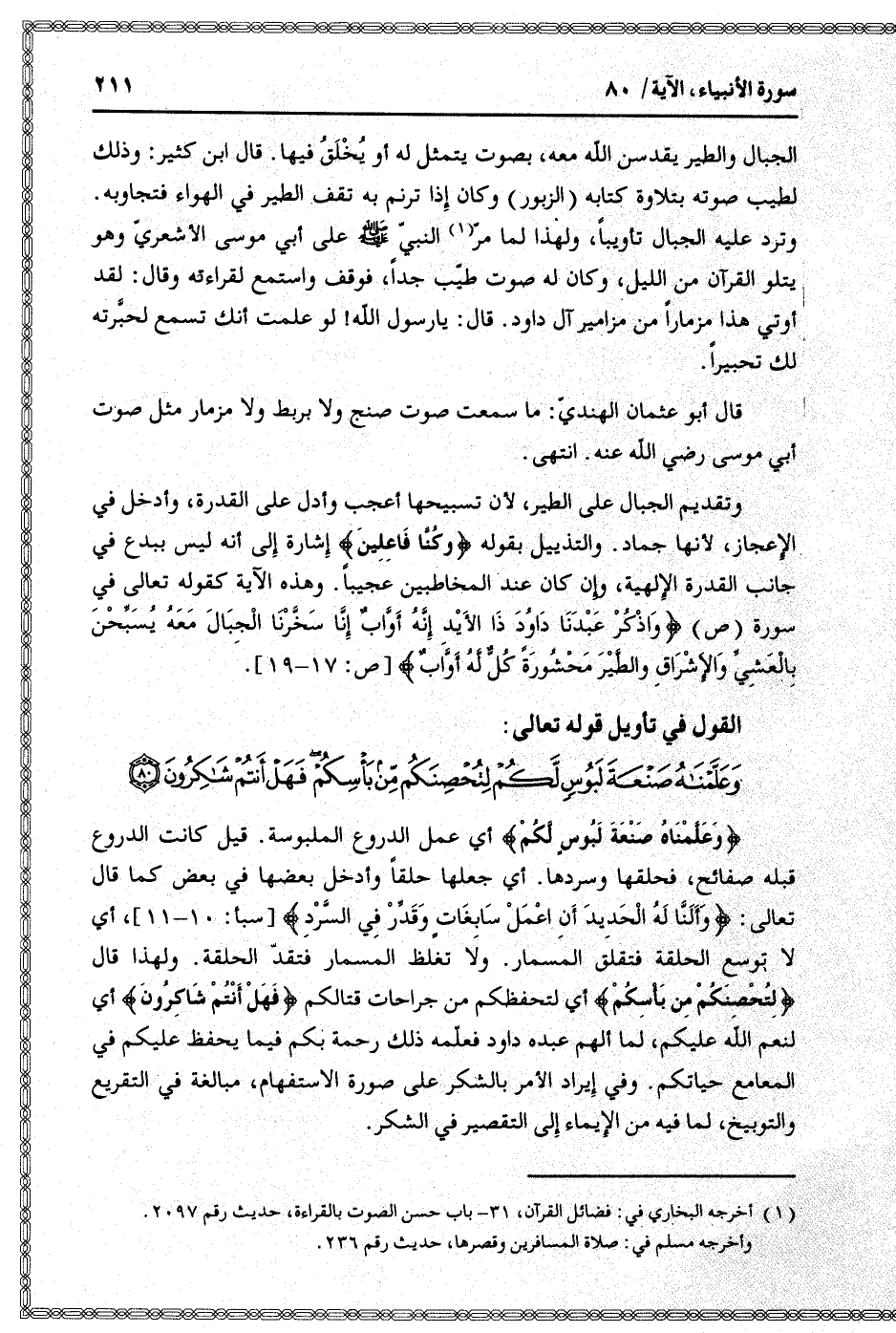 وَعَلَّمْناهُ صَنْعَةَ لَبُوسٍ لَكُمْ لِتُحْصِنَكُمْ مِنْ بَأْسِكُمْ فَهَلْ أَنْتُمْ شاكِرُونَ (80)
