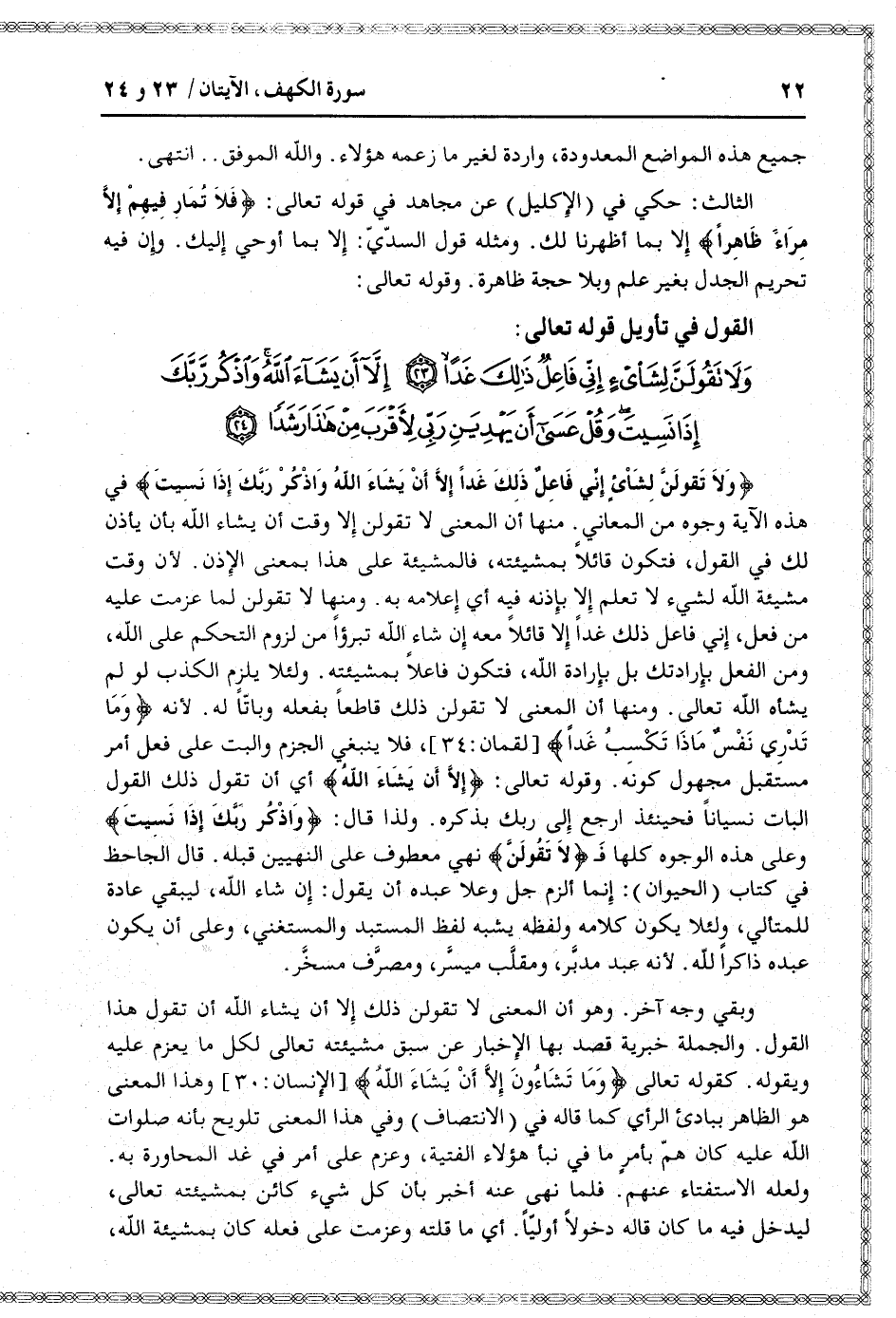 القول في تأويل قوله تعالى: [سورة الكهف (18) : الآيات 23 الى 24]
