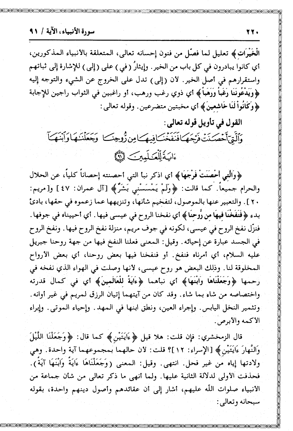 القول في تأويل قوله تعالى: [سورة الأنبياء (21) : آية 91]