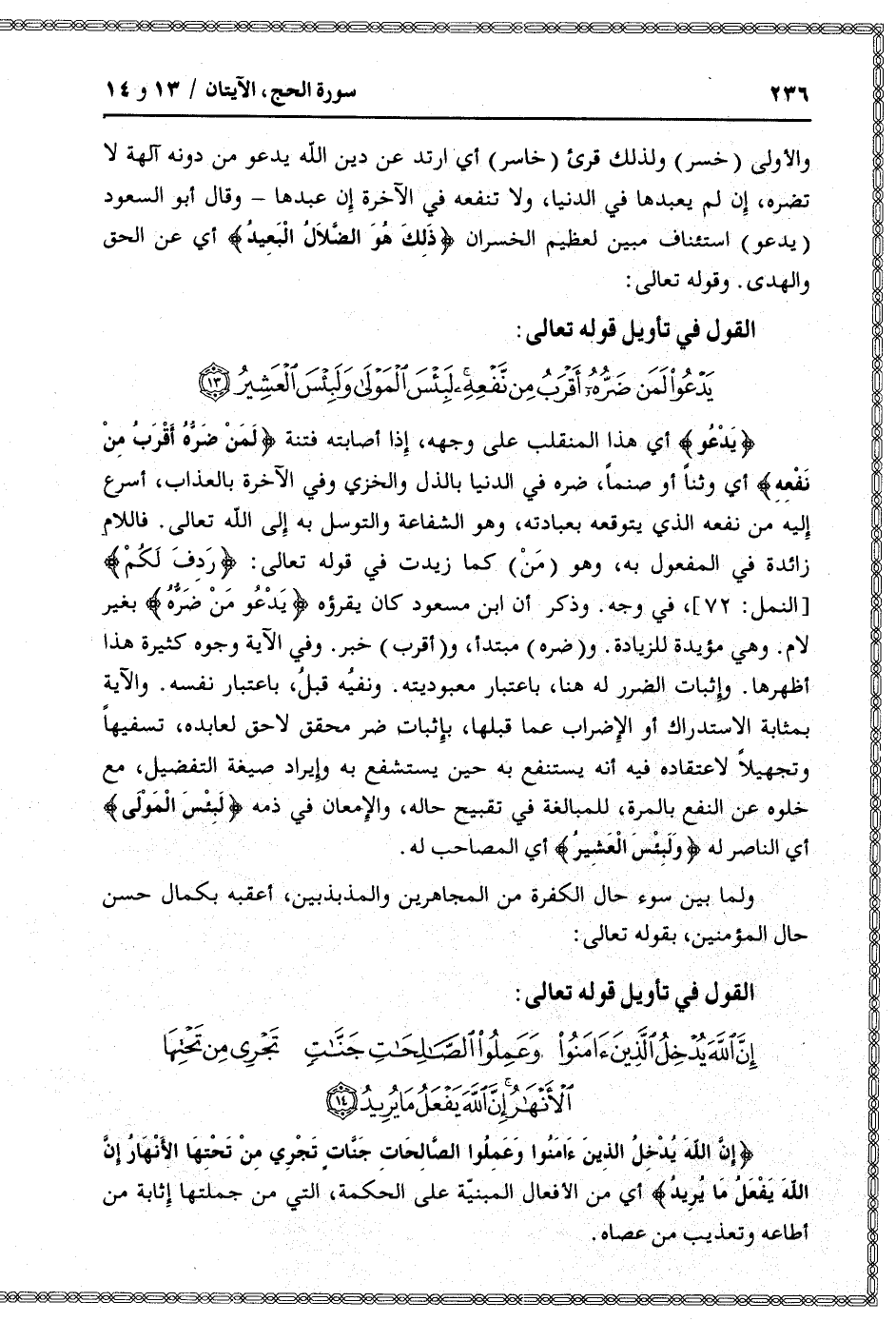 القول في تأويل قوله تعالى: [سورة الحج (22) : آية 14]