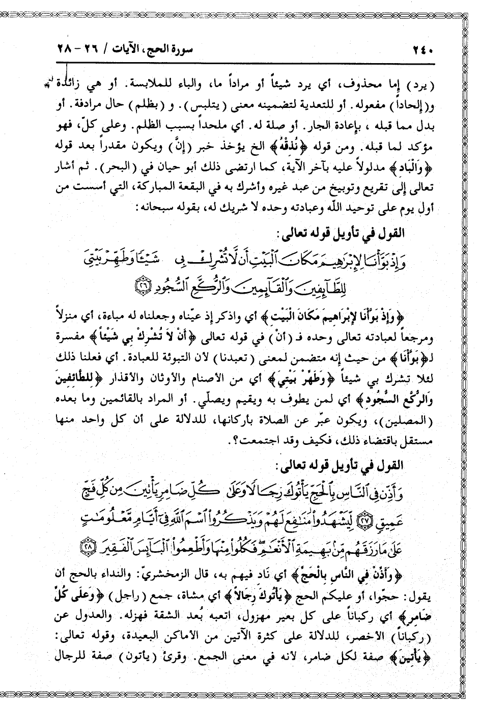 وَأَذِّنْ فِي النَّاسِ بِالْحَجِّ يَأْتُوكَ رِجالاً وَعَلى كُلِّ ضامِرٍ يَأْتِينَ مِنْ كُلِّ فَجٍّ عَمِيقٍ (27) لِيَشْهَدُوا مَنافِعَ لَهُمْ وَيَذْكُرُوا اسْمَ اللَّهِ فِي أَيَّامٍ مَعْلُوماتٍ عَلى ما رَزَقَهُمْ مِنْ بَهِيمَةِ الْأَنْعامِ فَكُلُوا مِنْها وَأَطْعِمُوا الْبائِسَ الْفَقِيرَ (28)