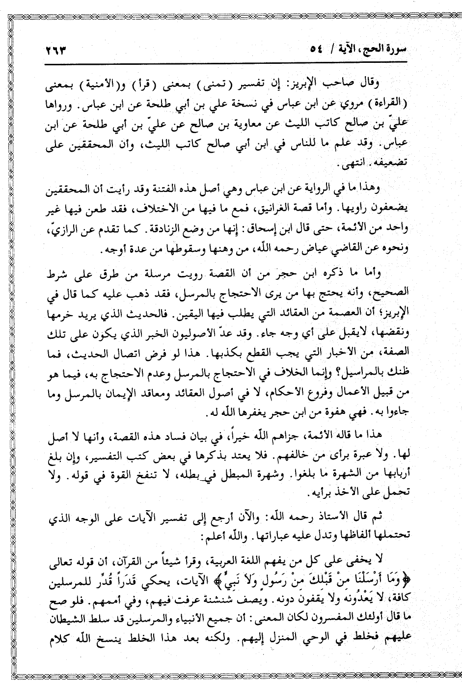 هذا ما قاله الأئمة، جزاهم الله خيرا، في بيان فساد هذه القصة، وأنها لا أصل لها. ولا عبرة برأى من خالفهم. فلا يعتد بذكرها في بعض كتب التفسير، وإن بلغ أربابها من الشهرة ما بلغوا. وشهرة المبطل في بطله، لا تنفخ القوة في قوله. ولا تحمل على الأخذ برأيه.