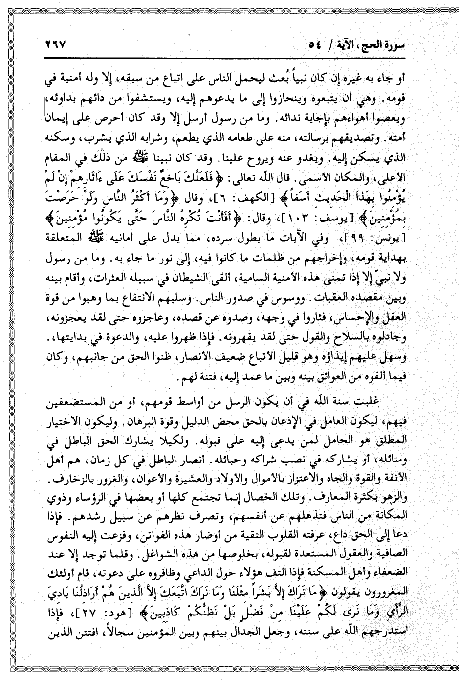 أو جاء به غيره إن كان نبيا بعث ليحمل الناس على اتباع من سبقه، إلا وله أمنية في قومه. وهي أن يتبعوه وينحازوا إلى ما يدعوهم إليه، ويستشفوا من دائهم بدوائه، ويعصوا أهواءهم بإجابة ندائه. وما من رسول أرسل إلا وقد كان أحرص على إيمان أمته. وتصديقهم برسالته، منه على طعامه الذي يطعم، وشرابه الذي يشرب، وسكنه الذي يسكن إليه. ويغدو عنه ويروح علينا. وقد كان نبينا صلى الله عليه وسلم من ذلك في المقام الأعلى، والمكان الأسمى. قال الله تعالى: فَلَعَلَّكَ باخِعٌ نَفْسَكَ عَلى آثارِهِمْ إِنْ لَمْ يُؤْمِنُوا بِهذَا الْحَدِيثِ أَسَفاً [الكهف: 6] ، وقال وَما أَكْثَرُ النَّاسِ وَلَوْ حَرَصْتَ بِمُؤْمِنِينَ [يوسف: 103] ، وقال: أَفَأَنْتَ تُكْرِهُ النَّاسَ حَتَّى يَكُونُوا مُؤْمِنِينَ [يونس: 99] ، وفي الآيات ما يطول سرده، مما يدل على أمانيه صلى الله عليه وسلم المتعلقة بهداية قومه، وإخراجهم من ظلمات ما كانوا فيه، إلى نور ما جاء به. وما من رسول ولا نبيّ إلا إذا تمنى هذه الأمنية السامية، ألقى الشيطان في سبيله العثرات، وأقام بينه وبين مقصده العقبات. ووسوس في صدور الناس. وسلبهم الانتفاع بما وهبوا من قوة العقل والإحساس، فثاروا في وجهه، وصدوه عن قصده، وعاجزوه حتى لقد يعجزونه، وجادلوه بالسلاح والقول حتى لقد يقهرونه. فإذا ظهروا عليه، والدعوة في بدايتها،.