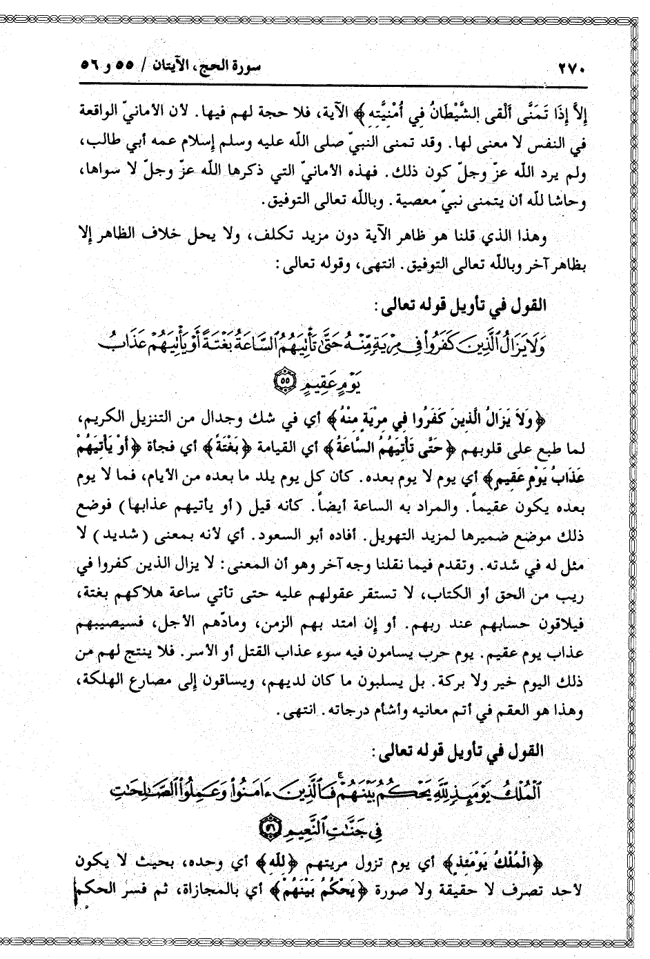 القول في تأويل قوله تعالى: [سورة الحج (22) : آية 55]