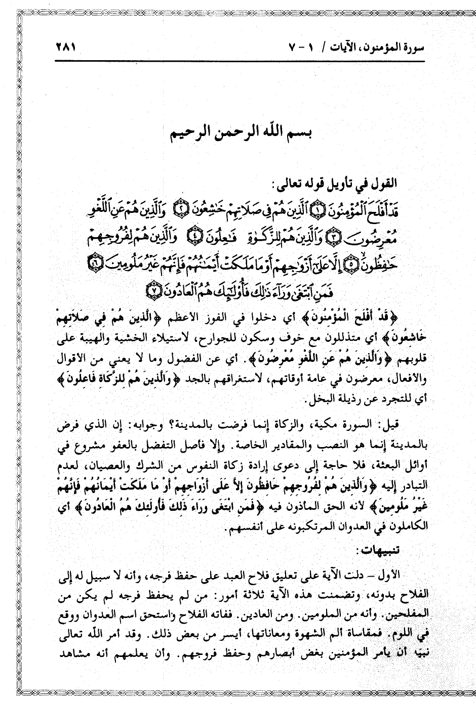 القول في تأويل قوله تعالى: [سورة المؤمنون (23) : الآيات 1 الى 7]