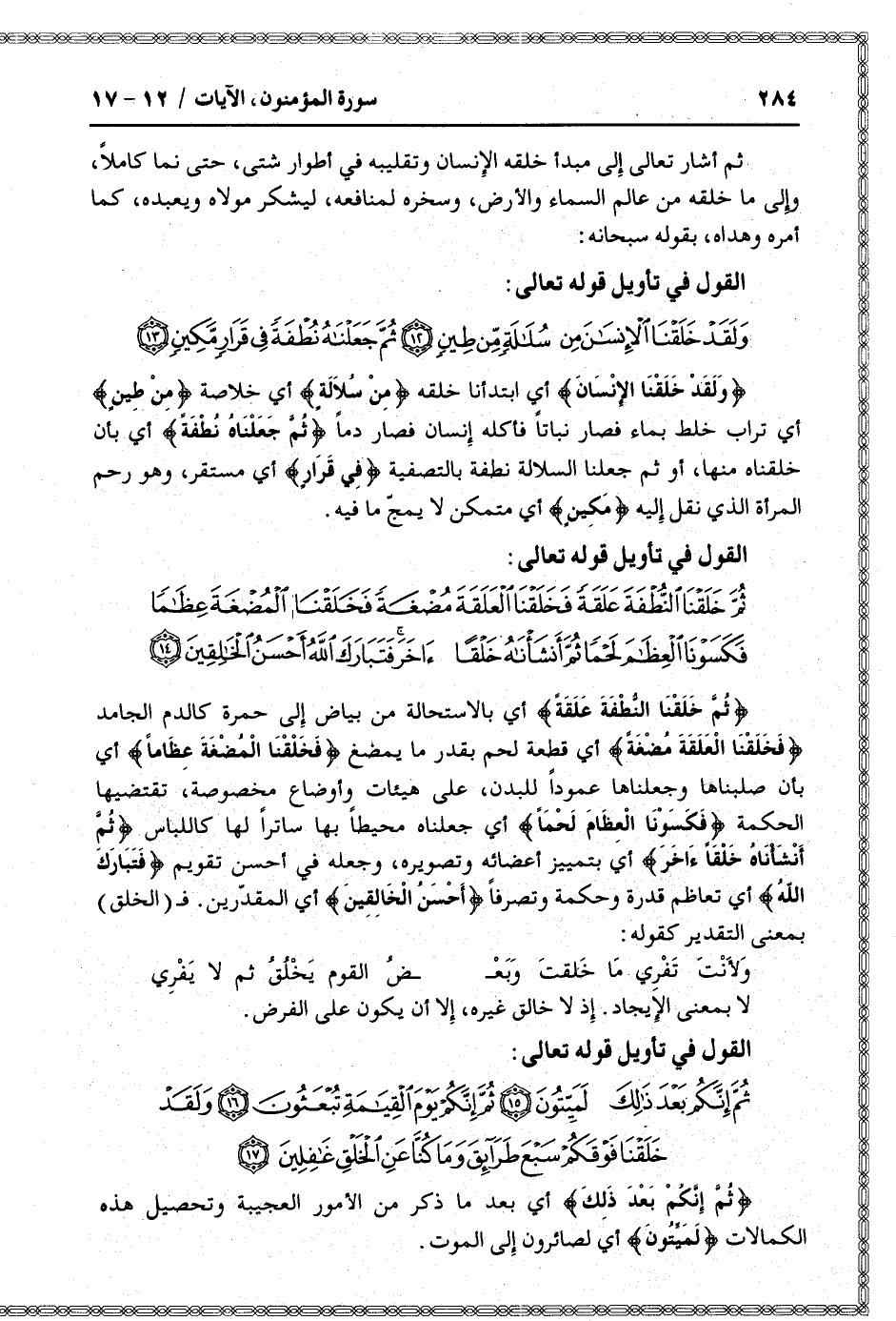 وَلَقَدْ خَلَقْنَا الْإِنْسانَ مِنْ سُلالَةٍ مِنْ طِينٍ (12) ثُمَّ جَعَلْناهُ نُطْفَةً فِي قَرارٍ مَكِينٍ (13)