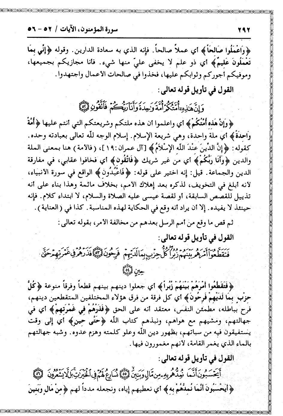 القول في تأويل قوله تعالى: [سورة المؤمنون (23) : الآيات 53 الى 54]