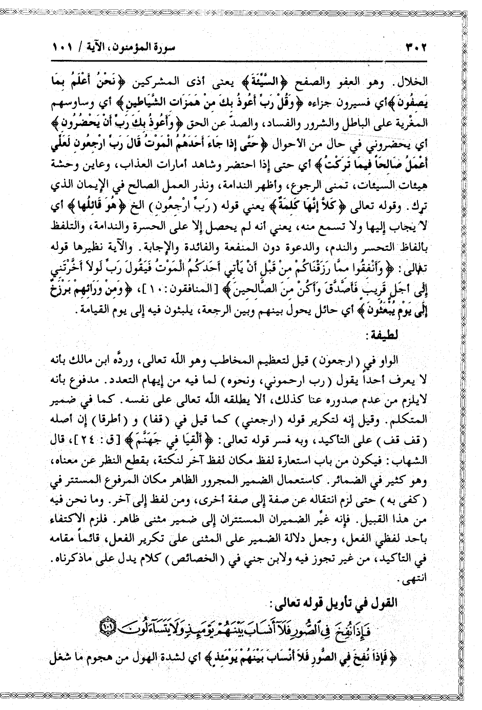 القول في تأويل قوله تعالى: [سورة المؤمنون (23) : آية 101]