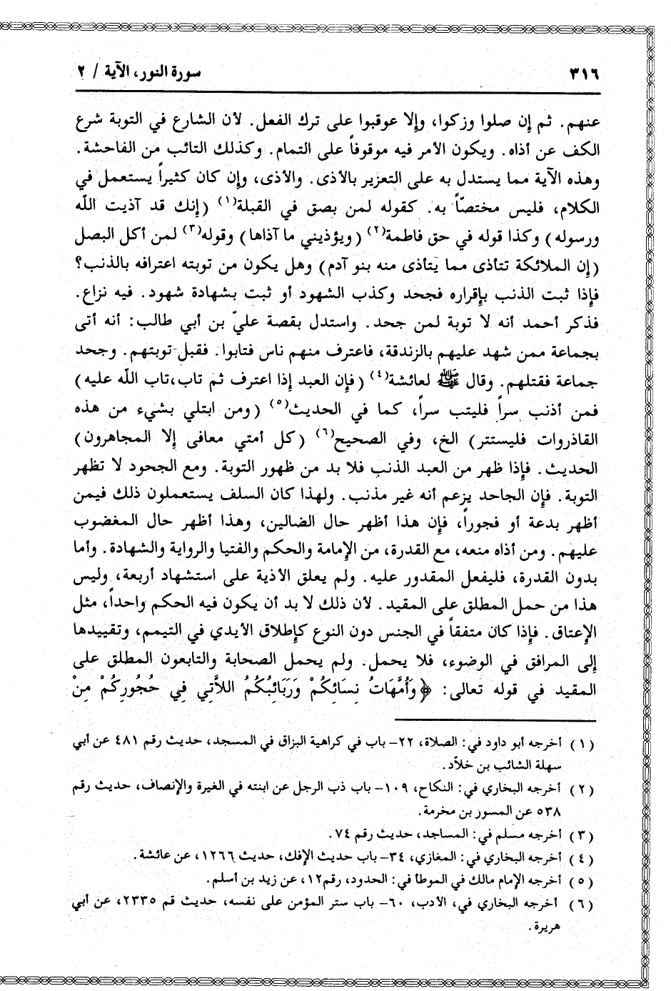 (6) أخرجه البخاري في، الأدب، 60- باب ستر المؤمن على نفسه، حديث قم 2335، عن أبي هريرة.