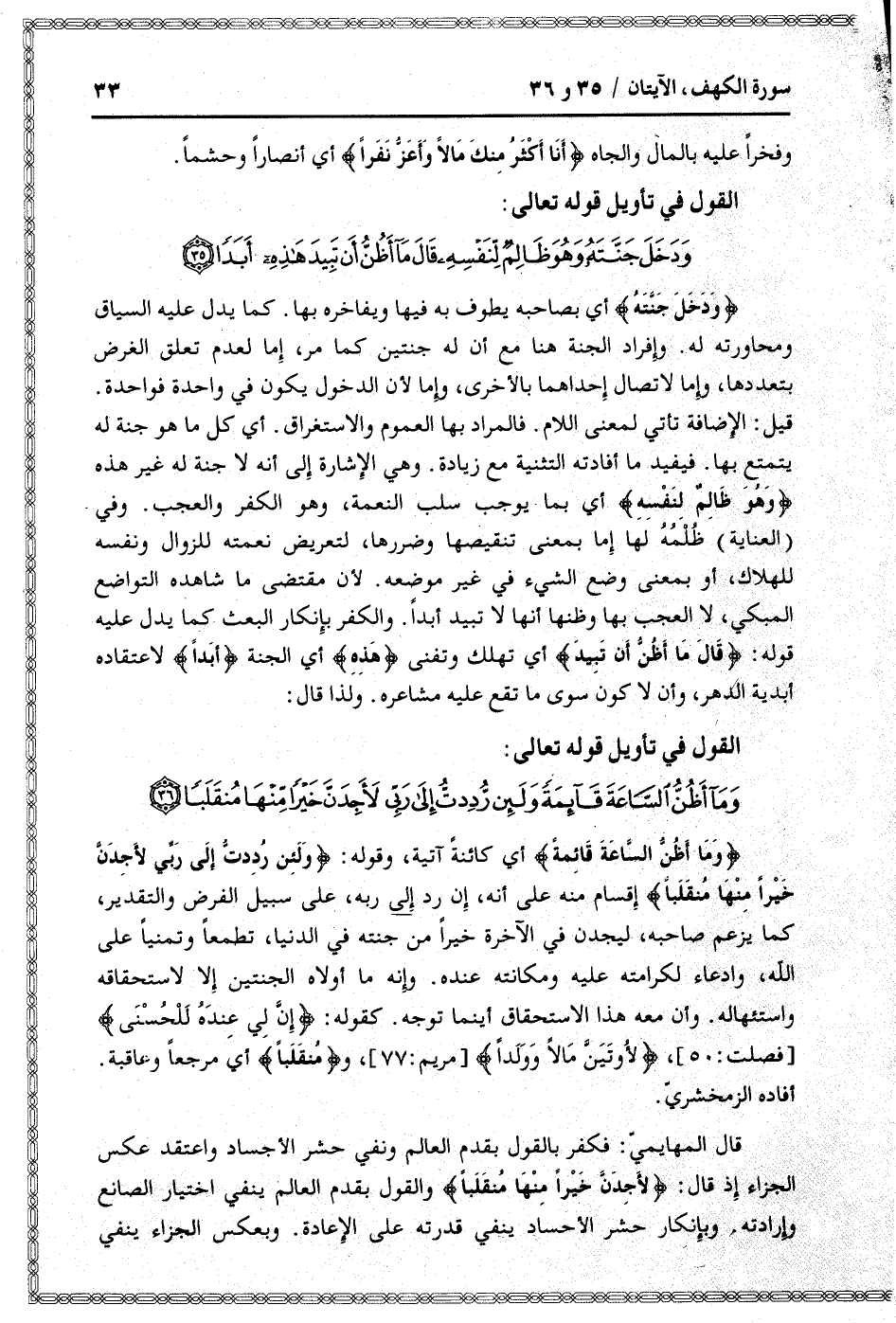 القول في تأويل قوله تعالى: [سورة الكهف (18) : آية 35]
