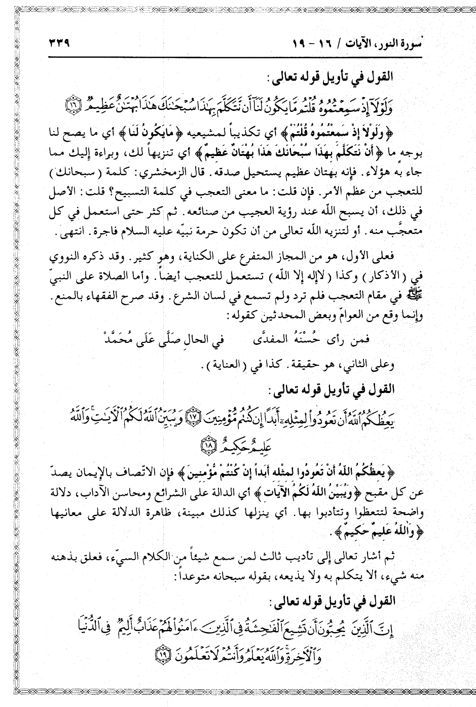 القول في تأويل قوله تعالى: [سورة النور (24) : آية 16]