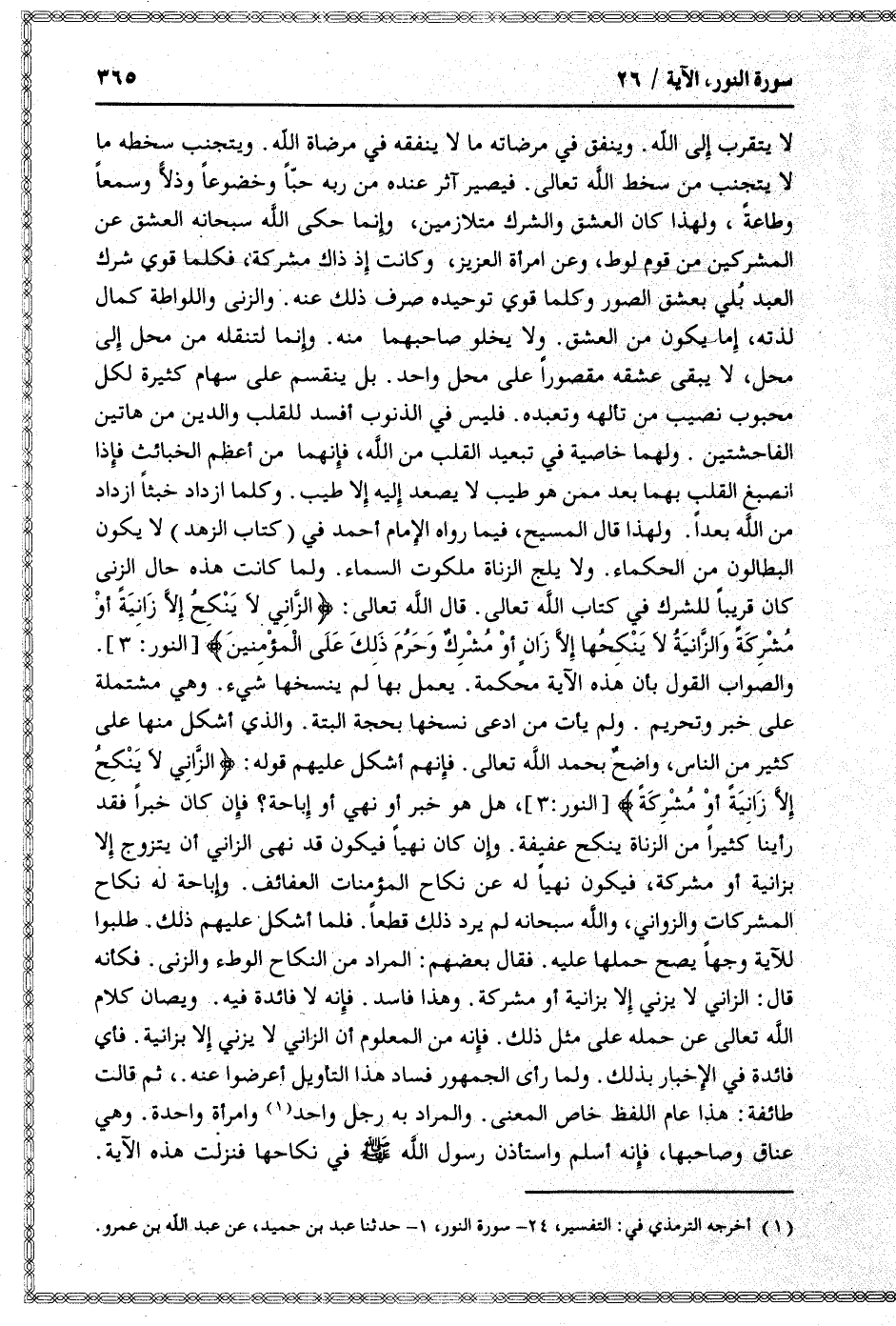 (1) أخرجه الترمذي في: التفسير، 24- سورة النور، 1- حدثنا عبد بن حميد، عن عبد الله بن عمرو.
